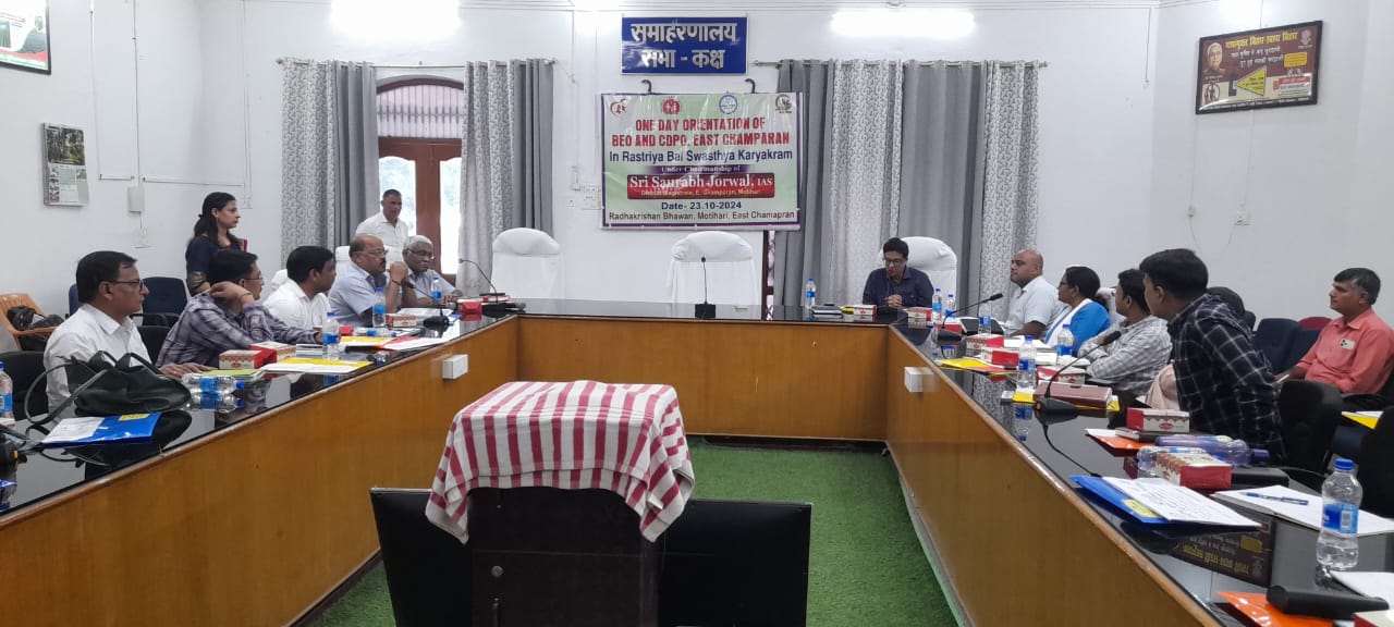 जला समाहरणालय के राधाकृष्ण भवन में प्रभारी डीएम शैलेन्द्र कुमार भारती एवं सिविल सर्जन डॉ. विनोद कुमार सिंह की अध्यक्षता में राष्ट्रीय बाल स्वास्थ्य कार्यक्रम अन्तर्गत सभी प्रखंडो के शिक्षा पदाधिकारी, बाल विकास परियोजना पदाधिकारियों व जिला स्वास्थ्य समिति के अधिकारियों की संयुक्त एकदिवसीय उन्मुखीकरण आयोजित की गईं। जिसमें सीएस ने राष्ट्रीय बाल स्वास्थ्य कार्यक्रम व मुख्यमंत्री बाल ह्रदय योजना के बारे में विस्तृत जानकारी देते हुए बताया की यह स्वास्थ्य विभाग की बहुत बड़ी योजना है, इसके अन्तर्गत बच्चों को 42 प्रकार की बिमारियों से सुरक्षा हेतु जिले में आरबीएसके चलन्त चिकित्सक दलों द्वारा समय समय पर आँगनबाड़ी केंद्रों व सरकारी विद्यालयों में स्क्रीनिंग की जाती है। उन्होंने बताया की पूरे बिहार में नंबर एक पर जिले को स्थान प्राप्त है।