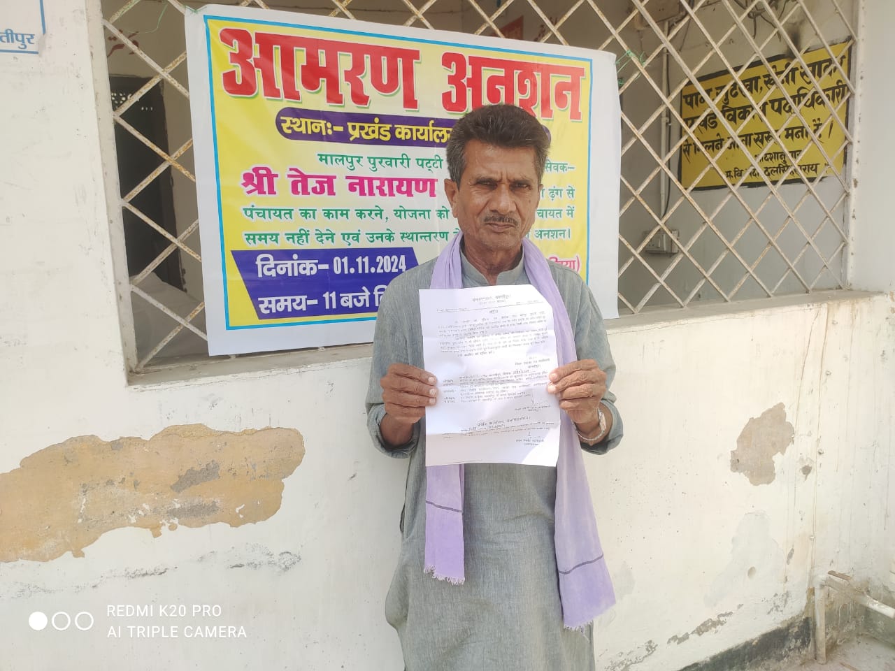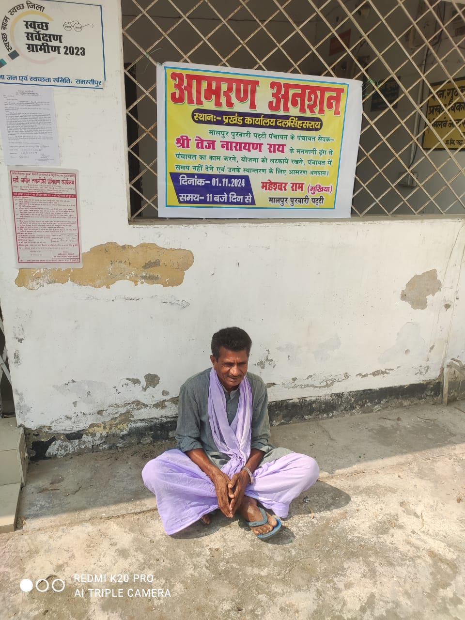 प्रखंड के मालपुर पुरवारी पट्टी पंचायत के पंचायत सचिव तेज नारायण राय के मनमानी रवैये एवं योजना को लटकाये रखने सहित पंचायत में समय नहीं देने के कारण उनके स्थानांतरण को लेकर पंचायत के मुखिया महेश्वर राम ने गत दिनों पहले 1 नवम्बर से प्रखंड कार्यालय पर आमरण अनशन करने की लिखित आवेदन प्रखंड विकास पदाधिकारी व जिला पंचायत राज पदाधिकारी समस्तीपुर को दिया था।