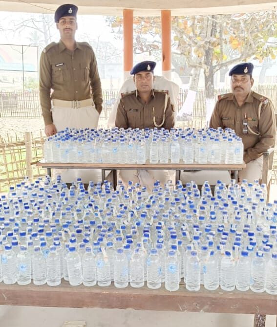 एक व्यक्ति के हाथ में एक पीला रंग का गैलन भी था जो फेंक दिया तभी बल के द्वारा उन सभी का पीछा किया गया परंतु अंधेरे का फायदा उठाकर नेपाल की तरफ भागने में सफल हो गए भागने कर्म में दो व्यक्ति (1)मोहन मंडल पिता सोनेलाल मंडल, (2)विशाल मंडल पिता मोहन मंडल दोनों हरिरा थारू टोला वार्ड संख्या एक थाना कुर्साकांटा पहचान कर लिया गया फके गए बोड़ी की तलाशी ली गई तो जिसमें 656 बोतल नेपाली दिलवाले देसी शराब प्रत्येक बोतल 300ml कुल 196.8 लीटर वह पीला रंग का गैलन में 15 लीटर जुलाई देसी शराब बरामद किया गया जब्त शराब का जब्ती सूची बनाकर तस्कर के खिलाफ केस दर्ज कर लिया गया।