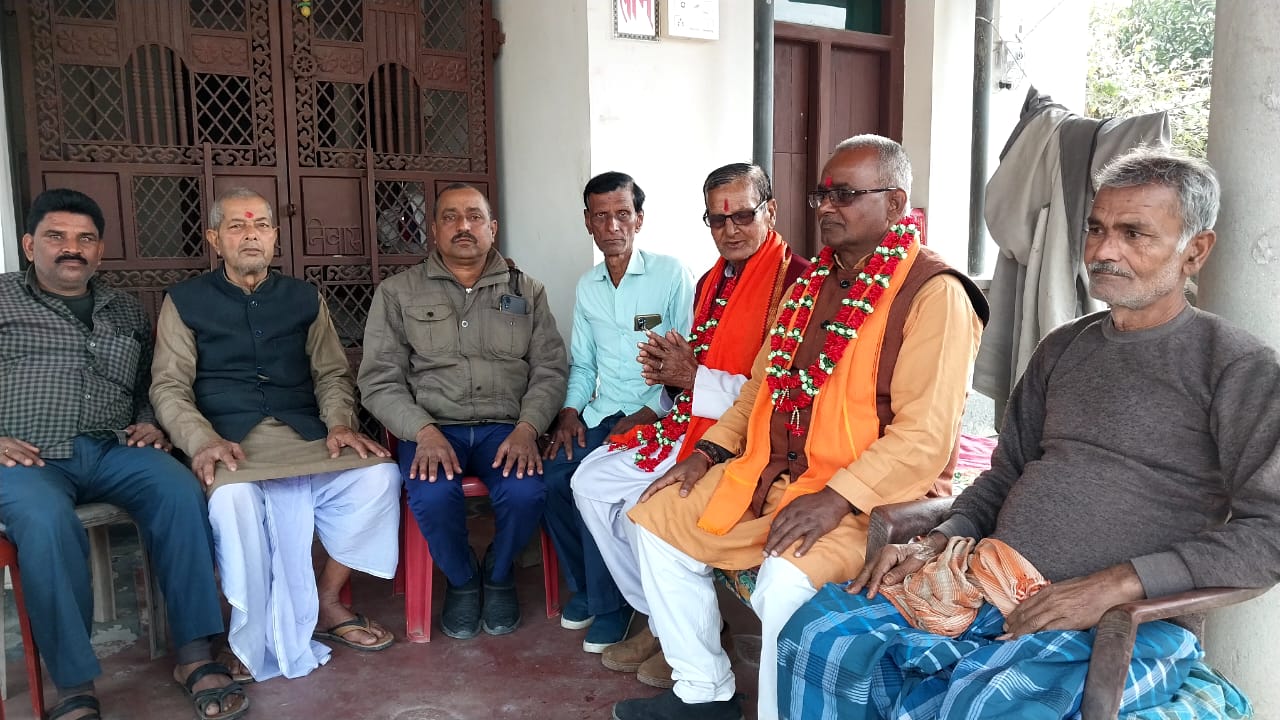दोनो वरिष्ट कार्यकर्ता को माला पहनाकर स्वागत ककरने में जिला मिडिया प्रभारी सितांशु शेखर पिंटू,