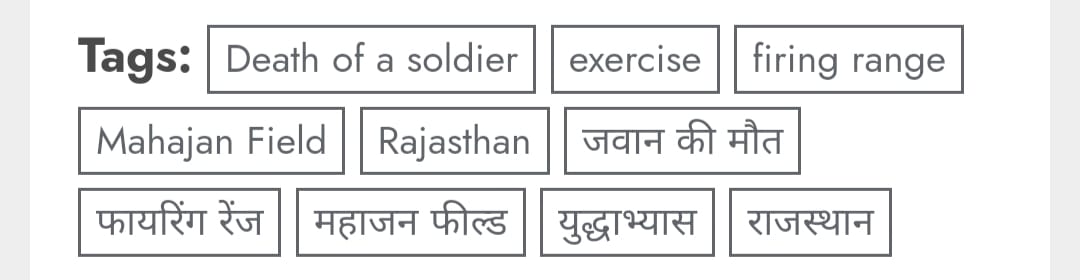 राजस्थान के बीकानेर के समीपवर्ती महाजन फील्ड फायरिंग रेंज में युद्धाभ्यास के दाैरान एक हादसे में जवान की माैत हाे गयी।