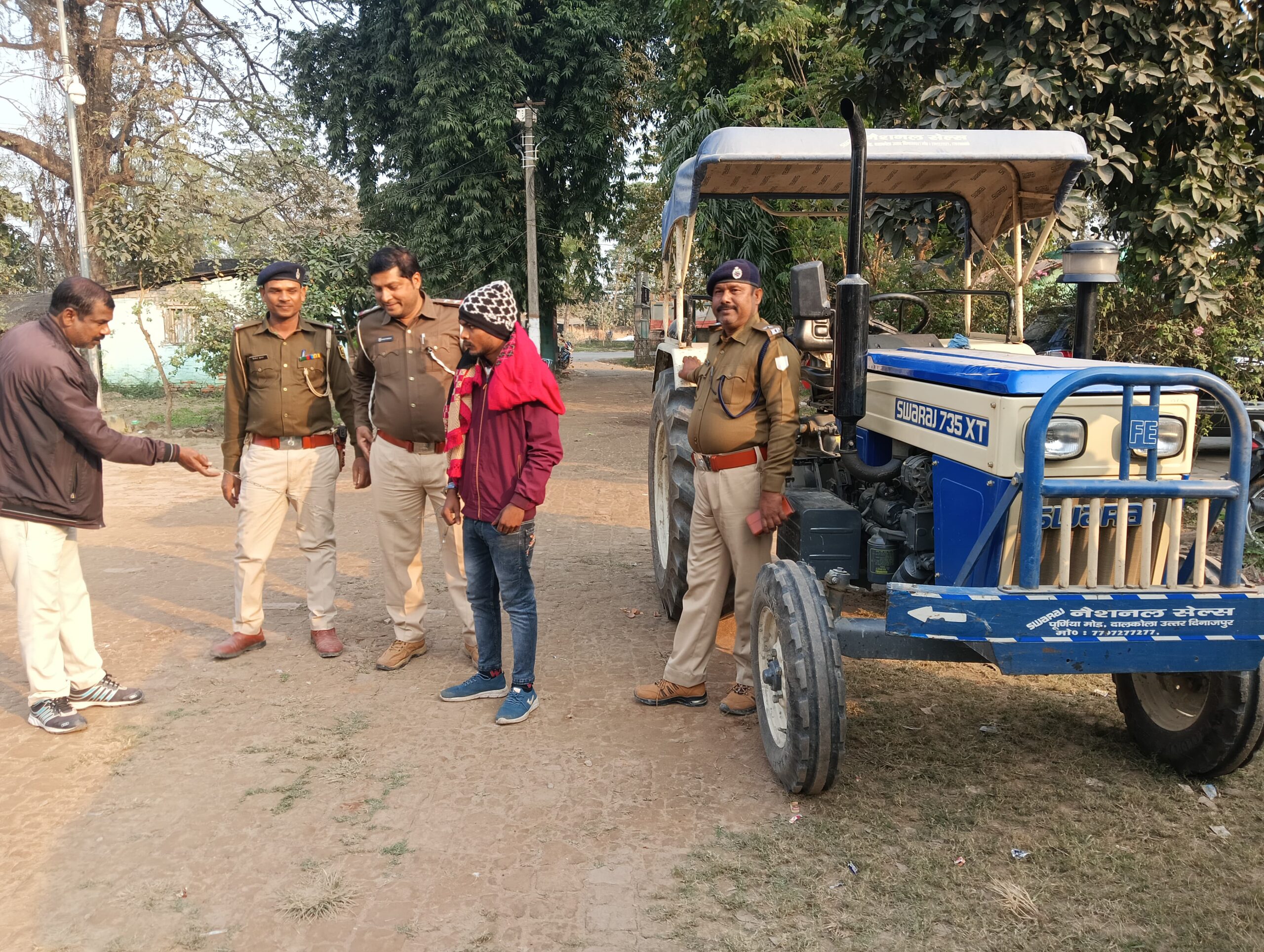 भवानीपुर थानाध्यक्ष सुनील कुमार ने बताया कि ट्रेक्टर चोरी की घटना के बाद तकनीकी अनुसंधान से चोरों का पता लगाया गया । उन्होंने बताया कि तकनीकी अनुसंधान के तहत ट्रेक्टर में लगे जीपीएस से सर्वप्रथम ट्रेक्टर का लोकेशन पता लगाया गया । जिसके बाद चोरी गए ट्रेक्टर को झारखंड के गोड्डा जिला अंतर्गत मेहरमा थाना क्षेत्र के सुखारी गांव से बरामद कर लिया । भवानीपुर पुलिस ने चोरी की ट्रेक्टर के साथ ट्रेक्टर चोर सुखारी गांव निवासी मो० अमीन के पुत्र मो० जिबराइल को गिरफ्तार किया है । गिरफ्तार चोर ने पूछताछ में अपने अन्य साथियों के नाम भी पुलिस अधिकारी को बताया है । फिलहाल पुलिस उसके अन्य साथियों का नाम गुप्त रखा है । भवानीपुर थानाध्यक्ष सुनील कुमार ने बताया कि गिरफ्तार चोर के बिरुद्ध विधिसम्मत कार्रवाई करते हुए उसे न्यायिक हिरासत में भेज दिया गया है