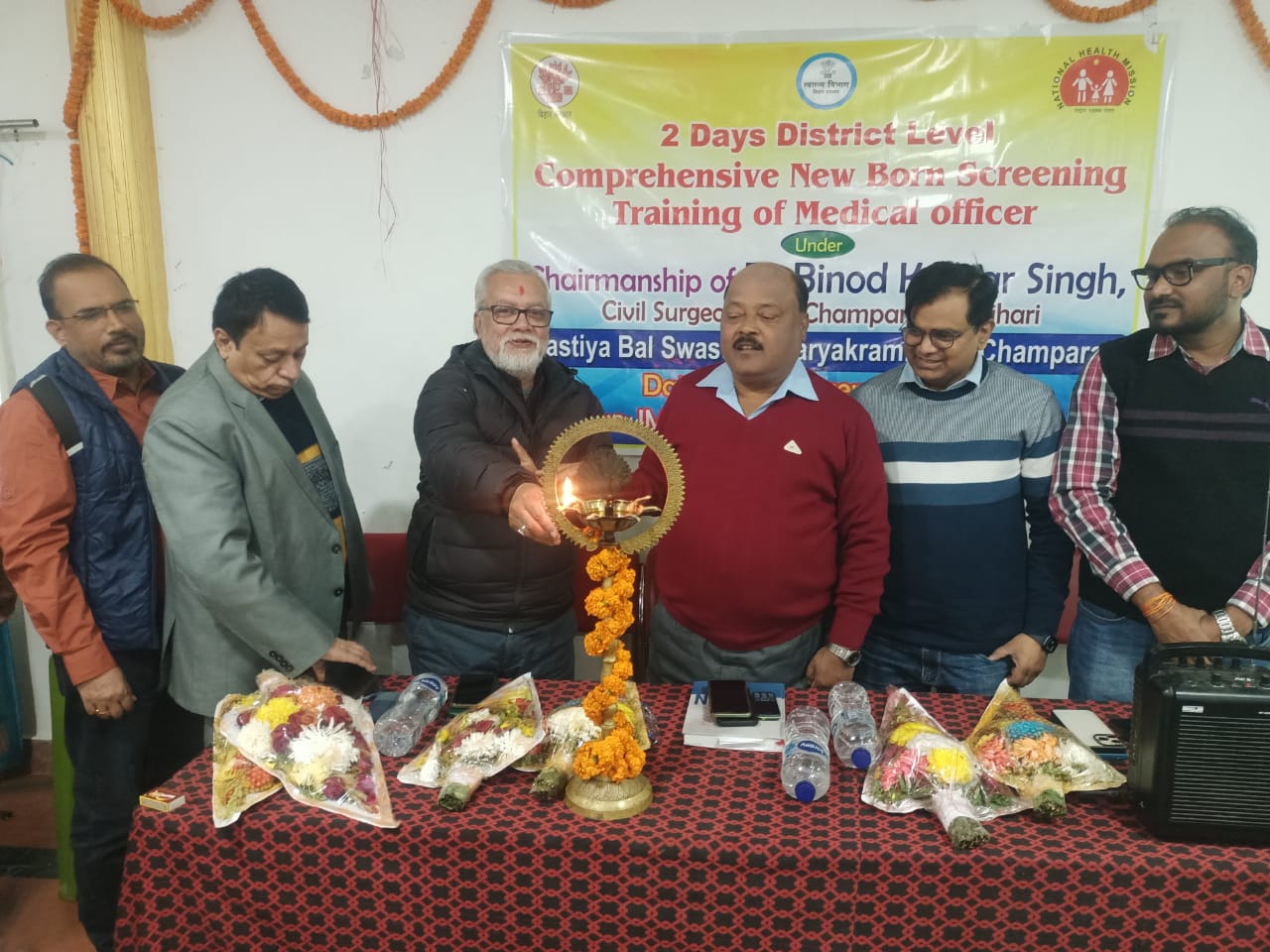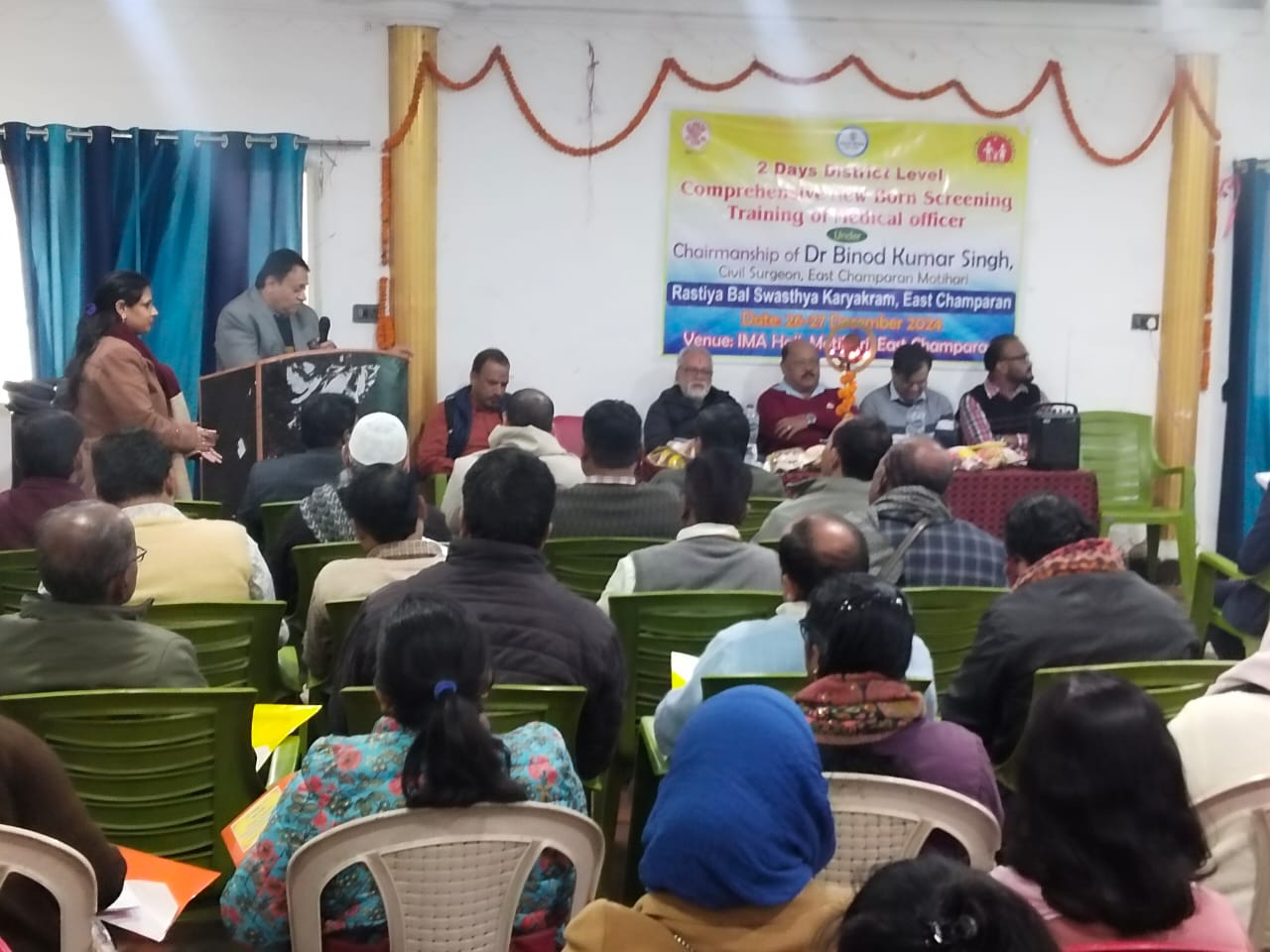 राष्ट्रीय बाल स्वास्थ्य कार्यक्रम के अंतर्गत मोतिहारी के आईएमए हॉल में अपर मुख्य चिकित्सा पदाधिकारी डॉ श्रवण कुमार पासवान की अध्यक्षता में बच्चों में होने वाले जन्मजात दोष और विकृतियों की पहचान के संबंध में जिला स्तरीय दो दिवसीय प्रशिक्षण कार्यक्रम का उद्घाटन किया गया। इस प्रशिक्षण में जिले के मोतिहारी, रक्सौल, पकड़ीदयाल, ढाका, अरेराज, चकिया के अनुमण्डलीय अस्पताल, जिले के सीएचसीसी/पीएचसी/एपीएचसी, डिलीवरी पॉइंट के चिकित्सा पदाधिकारियों एवं आरबीएसके के चिकित्सकों ने भाग लिया। अपर मुख्य चिकित्सा पदाधिकारी डॉ श्रवण कुमार पासवान ने बताया कि इस प्रशिक्षण का मुख्य उद्देश्य जन्म होते ही दोष एवं विकृति वाले बच्चों की पहचान करना है, ताकि जल्द से जल्द ऐसे बच्चों को स्वास्थ्य लाभ मिल सकें। वहीं सदर अस्पताल के उपाधीक्षक डॉ विजय कुमार ने बताया कि लोगों के बीच जन्मजात रोगों की पहचान करना एवं उनका समय पर इलाज करना बेहद आवश्यक है। उन्होंने बताया कि ऐसे बच्चों की पहचान करना ही आरबीएस के कार्यक्रम का मुख्य उद्देश्य है। उन्होंने चिकित्सकों को सेवा भावना से कार्य करने का सुझाव दिया।