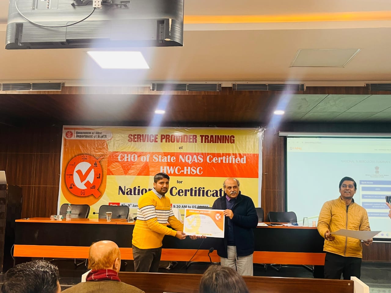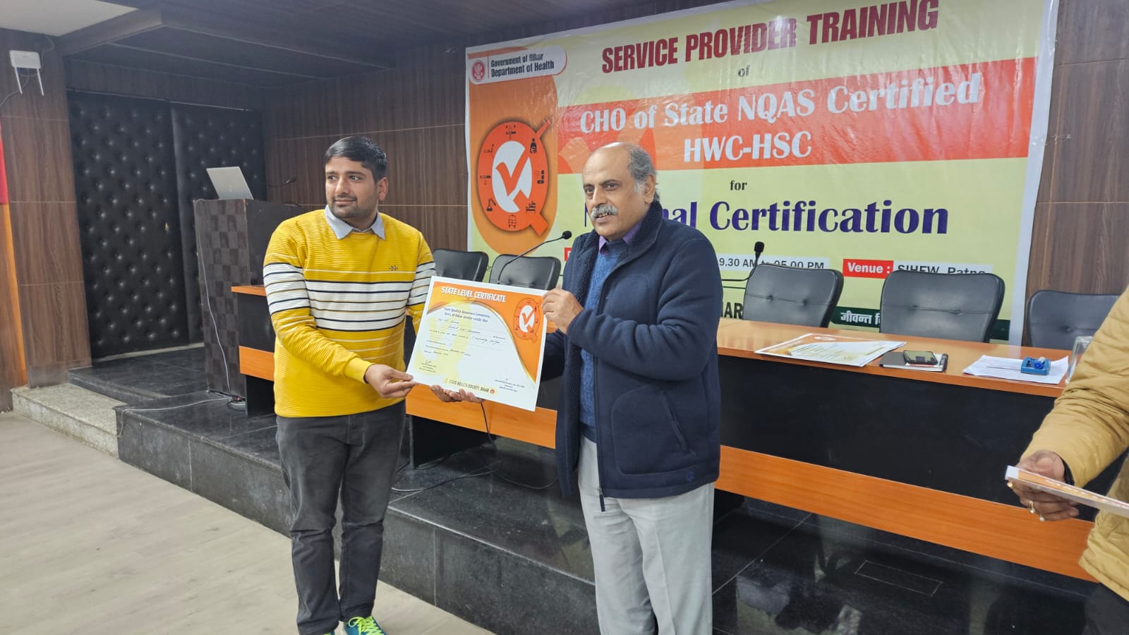 जिले के योगापट्टी प्रखंड स्थित डुमरी “हेल्थ एंड वेलनेस सेंटर” को राज्यस्तरीय एनक्यूएएस प्रमाणीकरण होने पर राज्य स्वास्थ्य समिति द्वारा गुरुवार को सीएचओ दुर्गेश शर्मा को प्रमाण-पत्र दिया गया। जिले के डीपीसी अमित कुमार ने बताया कि स्थानीय स्तर पर जनसमुदाय को बेहतर स्वास्थ्य सुविधा उपलब्ध कराने हेतु राज्य सरकार द्वारा हेल्थ एंड वेलनेस सेंटर की स्थापना की गई है। राज्यस्तरीय एनक्यूएएस प्रमाणीकरण टीम द्वारा 20 नवंबर को एसेसमेंट हेतु गहनता के साथ इसका मूल्यांकन किया गया था। इसमें डुमरी आयुष्मान भारत हेल्थ एंड वेलनेस सेंटर को 75 अंक प्राप्त हुए।