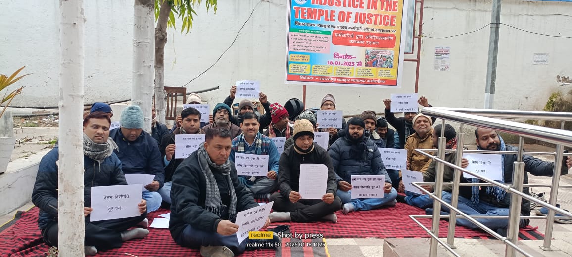 बिहार राज्य व्यवहार न्यायालय कर्मचारी संघ के आह्वान पर 4 सूत्री मांगों को लेकर गुरुवार को दलसिंहसराय में न्यायालय कर्मचारी संघ के सदस्य न्यायालय परिसर परअनिश्चित कालीन कलम बंद हड़ताल किया। कर्मचारियों के मांग पत्र मे वेतन विसंगति को जल्द से जल्द पूरा करने, सभी तृतीय व चतुर्थ श्रेणी वर्ग के कर्मचारियों को शीघ्र पदोन्नति, शत प्रतिशत अनुकंपा पर बहाली करने एवं विशेष न्यायिक कैडर लागू करने का मांग शामिल है।