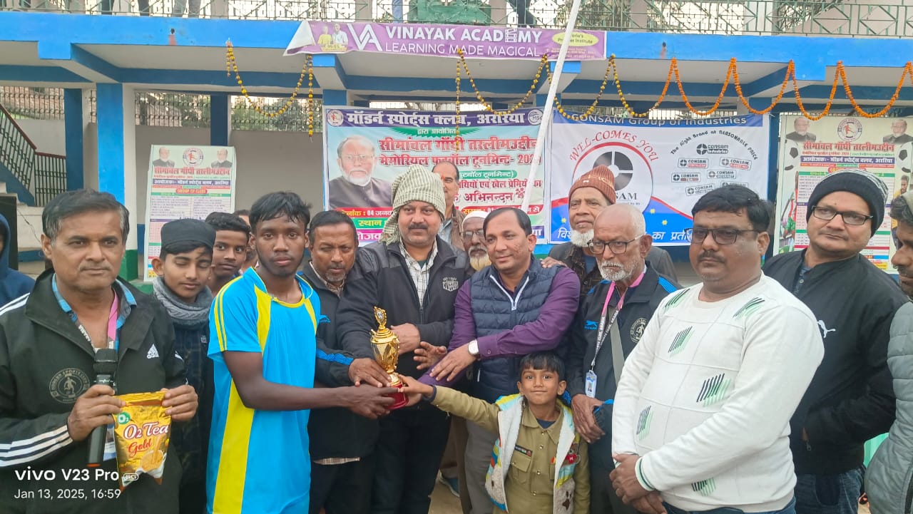 ,टूर्नामेंट के सफल आयोजन में मॉडर्न स्पोर्ट्स क्लब के पदाधिकारी और खिलाड़ी अहम भूमिका निभा रहे हैं.उद्घोषक के रूप में चांद आज़मी और सदरे आलम ने दर्शकों को आंखों देखा हाल सुनाया ,मैच को खिलाने में बिहार पैनल के रेफरी लगातार सभी मैच को बेहतर तरीके से खिला रहे है ,मौके पर पंकज पाठक ,हसन रेजा,विजय किशोर प्रसाद ,ललन सिंह के अलावा अन्य गणमान्य दर्शक मैच का आनंद लेते देखे गए .मैच में लगभग दस हजार दर्शक मौजूद थे ,टूर्नामेंट का तीसरा क्वाटर फाइनल आज मॉडर्न स्पोर्ट्स क्लब अररिया और टाउन क्लब बांका के बीच खेला जाएगा ,रायगंज बंगाल और कटिहार बिहार की टीम पहले ही सेमीफाइनल में पहुंच चुकी है ,मौके पर क्लब के अध्यक्ष सत्यन शरण ,सचिव इश्तियाक आलम ,जकी अख्तर अंसारी ,तंजील अहमद झुन्नू ,शादाब शमीम ,शकील अंसारी ,वकार अहमद मोहतसिम जुबैरी अब्दुल गफ्फार आदि मौजूद थे . मैन ऑफ द मैच का खिताब जॉन्टी मुरमुर को दिया गया.