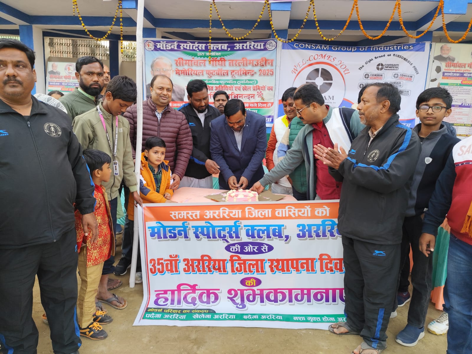 उन्होंने कहा कि खेल से बच्चे का मानसिक और शारीरिक विकास दोनों होता है .इस अंतरराज्यीय फुटबॉल टूर्नामेंट में कुल सोलह टीम भाग ले रही है जिसमें बिहार ,बंगाल ,उत्तर प्रदेश झारखंड और नेपाल की टीम शामिल हैऔर स्थापना दिवस मौके पर मॉडर्न स्पोर्ट क्लब के द्वारा केक काट कर मनाया गैया ,मॉडर्न स्पोर्ट क्लब के अध्यक्ष सत्यन शरण ,सचिव इश्तियाक आलम ,जकी अख्तर अंसारी ,शदिक़ हाशमी चिम्पु ,शकील अंसारी ,मोतस्सिम ज़ुबैरी ,शादाब शमीम ,मुस्सरफ़ आदि मौजूद थे.मालूम हो कि इस टूर्नामेंट का जो फाइनल मैच अठारह को होना था वो अब 19 जनवरी को इसी मैदान में खेला जाएगा .