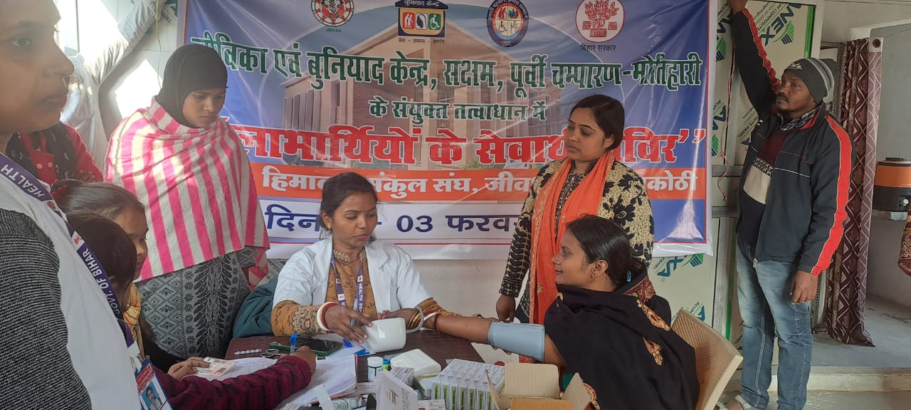 जिले के पिपरा कोठी प्रखंड के अंतर्गत जीविका, स्वास्थ्य विभाग एवं बुनियाद केंद्र के संयुक्त तत्वाधान में स्वास्थ्य जागरूकता सह जांच शिविर का आयोजन हिमालय जीविका महिला संकुल संघ, जीवधारा, पिपरा कोठी में आयोजित किया गया, कार्यक्रम का शुभारंम्भ जीविका जिला परियोजना प्रबंधक गणेश पासवान के द्वारा दीप प्रजव्लित कर किया गया। स्वास्थ्य जांच शिविर में जीविका दीदियों का एनसीडी स्क्रीनिंग के तहत ब्लड प्रेशर, डाईबीटीज एवं कैंसर का स्क्रीनिंग किया गया। स्वास्थ्य विभाग से डाक्टर भाव्या गुप्ता ने कैंसर के कारण, लक्षण एवं बचाव के बारे में जीविका दीदियों के साथ विस्तार से चर्चा किया । साथ ही स्वास्थ्य विभाग के सीएचओ के द्वारा स्क्रीनिंग के बाद मुफ्त दवा का वितरण किया गया। बुनियाद केंद्र के द्वारा वृद्धजन, दिव्यांग एवं विधवा हेतु विशेष नेत्र जांच, फिजियो जॉच, श्रवण वाक् के साथ वृद्धा एवं विधवा पेंशन संबंधित सेवा प्रदान की गई। इस अवसर पर लगभग 140 जीविका दीदियों सहित उनके परिवार के सदस्यों की स्वास्थ्य एवं नेत्र जांच की गईं|