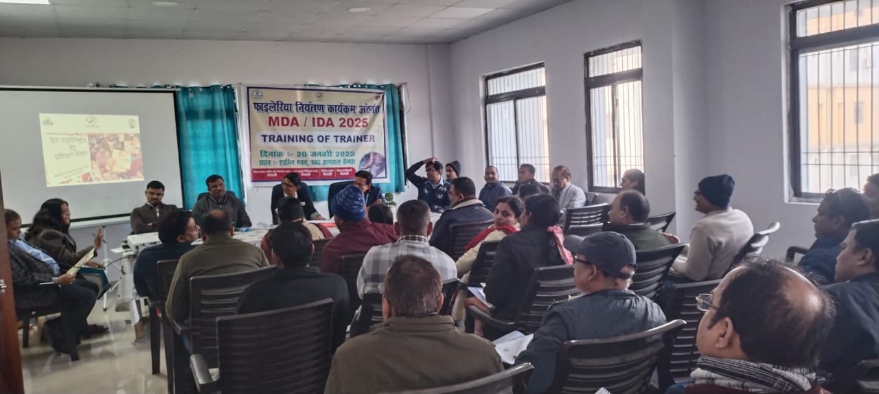 प्रशिक्षण के दौरान डब्ल्यूएचओ के एनटीडी राज्य सलाहकार डॉ राजेश पांडेय ने सर्वजन दवा सेवन कार्यक्रम की महत्ता के बारे में विस्तार से बताया। उन्होंने बताया कि जिले में जिस ट्रिपल ड्रग थेरेपी को लेकर अभियान चलाया जाएगा। उसे लगातार तीन साल लेने से फाइलेरिया जैसे रोग से बचा जा सकता है। यह अभियान वर्ष में सिर्फ एक बार ही संचालित होता है। प्रशिक्षण कार्यक्रम में भबीडीसीओ राजीव कुमार, अमित कुमार, नेहाल कुमार, अनिकेत कुमार, भीबीडीसी धीरेन्द्र कुमार, पीरामल से कृष्णदेव, कोमल एवं सीफार से नीतू कुमारी उपस्थित थी।