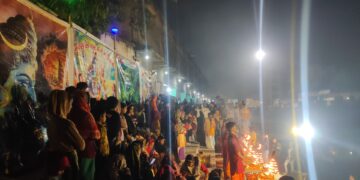 कुशेश्वरस्थान शिव मंदिर के शिव गंगा घाट पर वर्ष 2025 के तीसरे सोमवार को भी गंगा महाआरती का भव्य आयोजन किया गया। विभिन्न शिव नचारी के धुनों पर हुए गंगा महाआरती की प्रस्तुति से