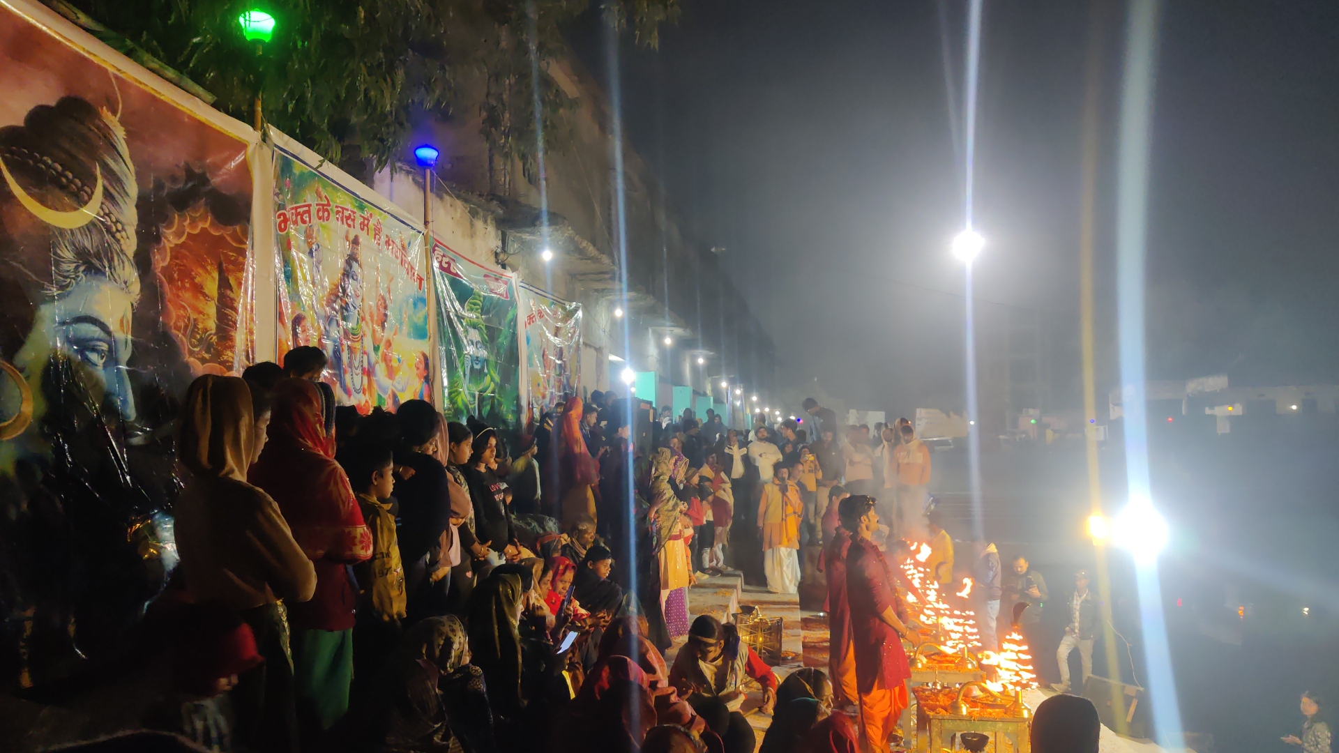 शिव गंगा घाट पर मौजूद सैकड़ों श्रद्धालुओं ने शिव नचारी के गायन पर झुमते हुए आंनद ले रहे थे।