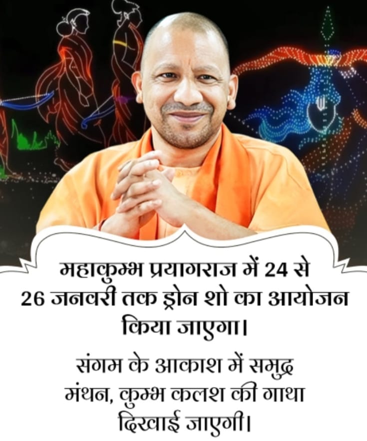 महाकुम्भ प्रयागराज में आने वाले देश-विदेश के श्रद्धालुओं को सनातन की समृद्ध विरासत से परिचित कराने के लिए 24 से 26 जनवरी तक ड्रोन शो का आयोजन किया जाएगा।