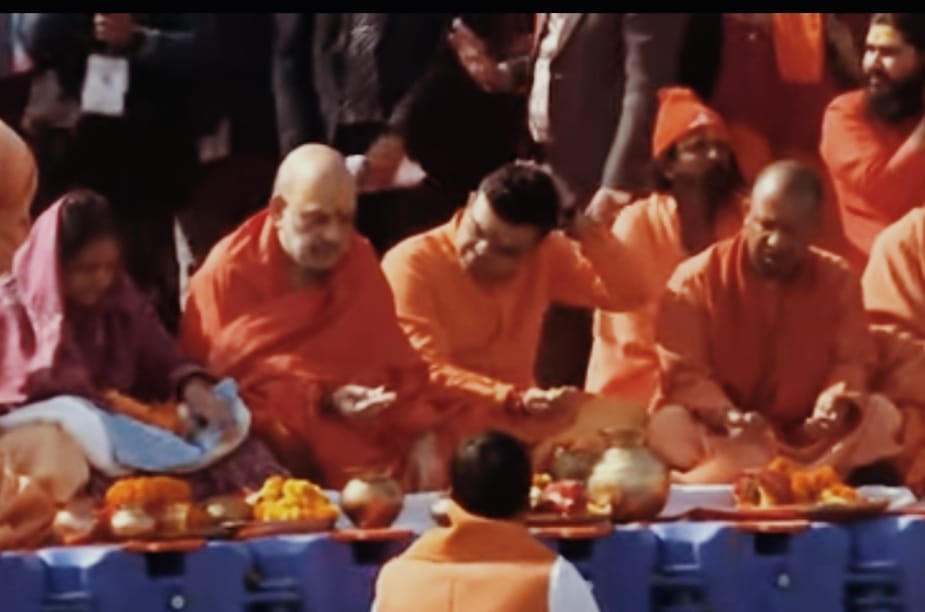 तीर्थराज प्रयाग में पावन संगम तट पर 27जनवरी को केंद्रीय गृह मंत्री अमित शाह के साथ पूजन एवं आरती में सम्मिलित होते उत्तर प्रदेश के मुख्यमंत्री योगी आदित्यनाथ-अनिल उपाध्याय, नजरिया न्यूज!