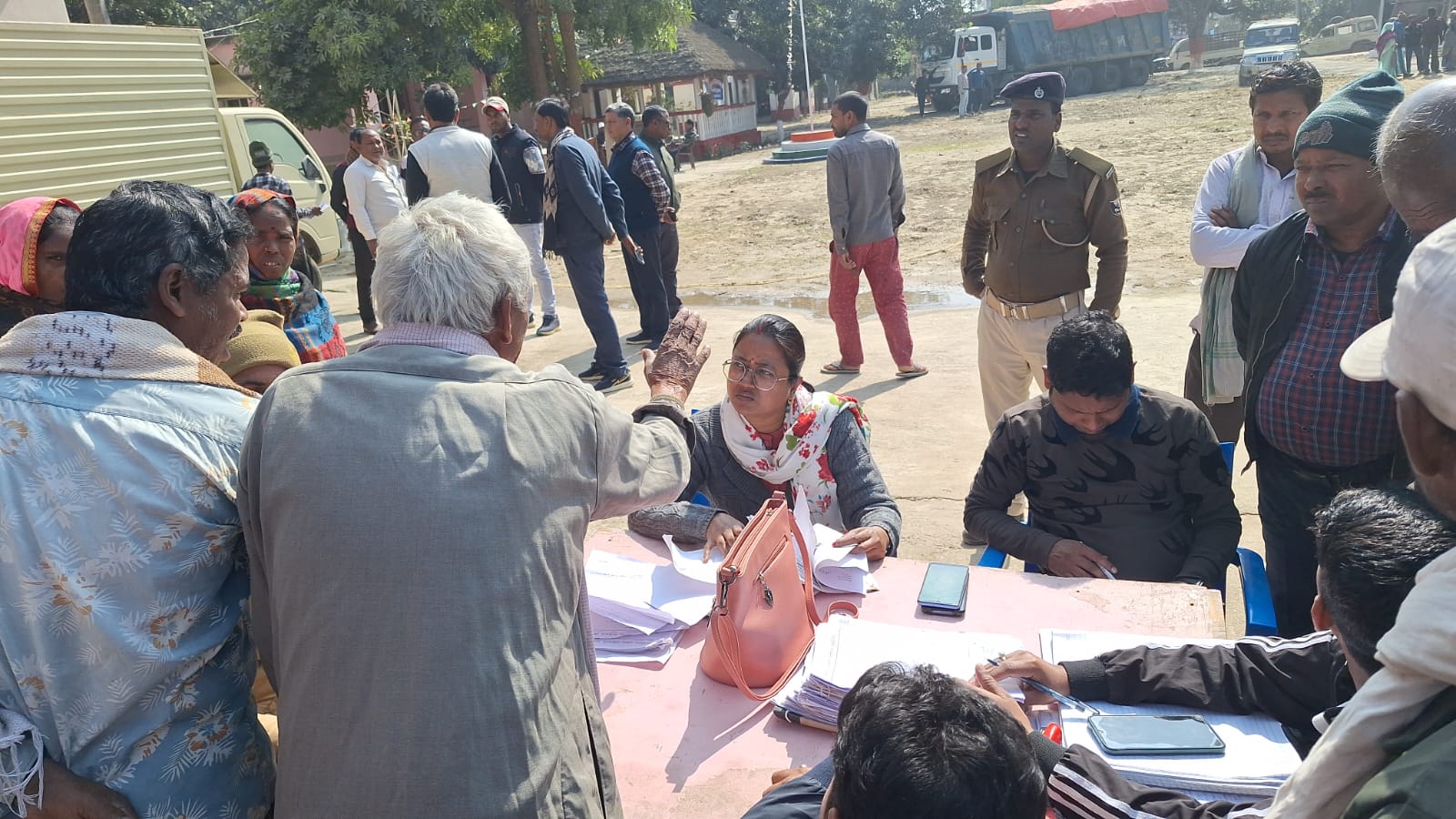 जिसमें चार मामले का निष्पादन किया गया।जनता दरबार में थाना के दारोगा ओमप्रकाश सिंह,वासगीत पर्चा लिपिक दौलत कुमार सहित थाना क्षेत्र के दर्जनों फरियादी अपनी जमीन विवाद को लेकर मौजूद थे।