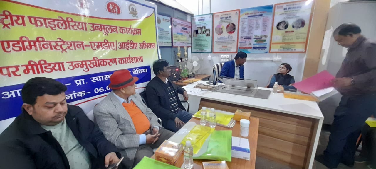 फाइलेरिया उन्मूलन कार्यक्रम के तहत बेतिया राजदेवड़ी परिसर स्थित प्राथमिक स्वास्थ्य केंद्र में सेंटर फॉर एडवोकेसी एंड रिसर्च के सहयोग से एक दिवसीय मीडिया कार्यशाला का आयोजन सिविल सर्जन डॉ विजय कुमार की अध्यक्षता में हुआ। सिविल सर्जन डॉ विजय कुमार ने फाइलेरिया बीमारी के बारे में विस्तृत जानकारी देते हुए बताया कि फाइलेरिया संक्रमित मादा क्यूलेक्स मच्छर द्वारा प्रसारित होने वाला गंभीर रोग हैं। इस रोग के लक्षण सामान्यतः 5 वर्ष या कभी-कभी इससे भी अधिक समय के पश्चात दिखते हैं। उन्होंने बताया की हाथी पाँव का इलाज नहीं होता है इसलिए बचाव ही इसका सबसे बेहतर उपाय है। उन्होंने बताया कि जिले के 32 लाख लोगों को इससे बचाव हेतु सर्वजन दवा खिलाई जाएगी। जिले के 14 प्रखंडो में आगामी 10 फरवरी से सर्वजन दवा सेवन कार्यक्रम (एमडीए राउंड) की शुरुआत की जाएगी। इसमें पहले 14 दिन घर-घर जाकर आशा व स्वास्थ्य कर्मी अपने सामने दवा का सेवन कराएंगे। उसके बाद 3 दिन स्कूल मे बूथ लगा कर दवा खिलाया जायगा। वहीं अपर मुख्य चिकित्सा पदाधिकारी डॉ रमेश चंद्र ने कहा की फाइलेरिया से बचाव को लोगों को जागरूक करना बहुत जरुरी है उन्होंने बताया की लोग दवा खाने में संकोच करते है, जबकि दवा खाने से परजीवी के मरने से हल्का साइड इफेक्ट हो सकता है इससे घबराना नहीं चाहिए, उन्होंने लोगों से अपील किया की फाइलेरिया रोधी दवा खुद खाये और अपने परिवारजनों को सेवन करने के लिए जागरूक करें।उन्होंने बताया की पार्टनर एजेंसी, जनप्रतिनिधियों के द्वारा