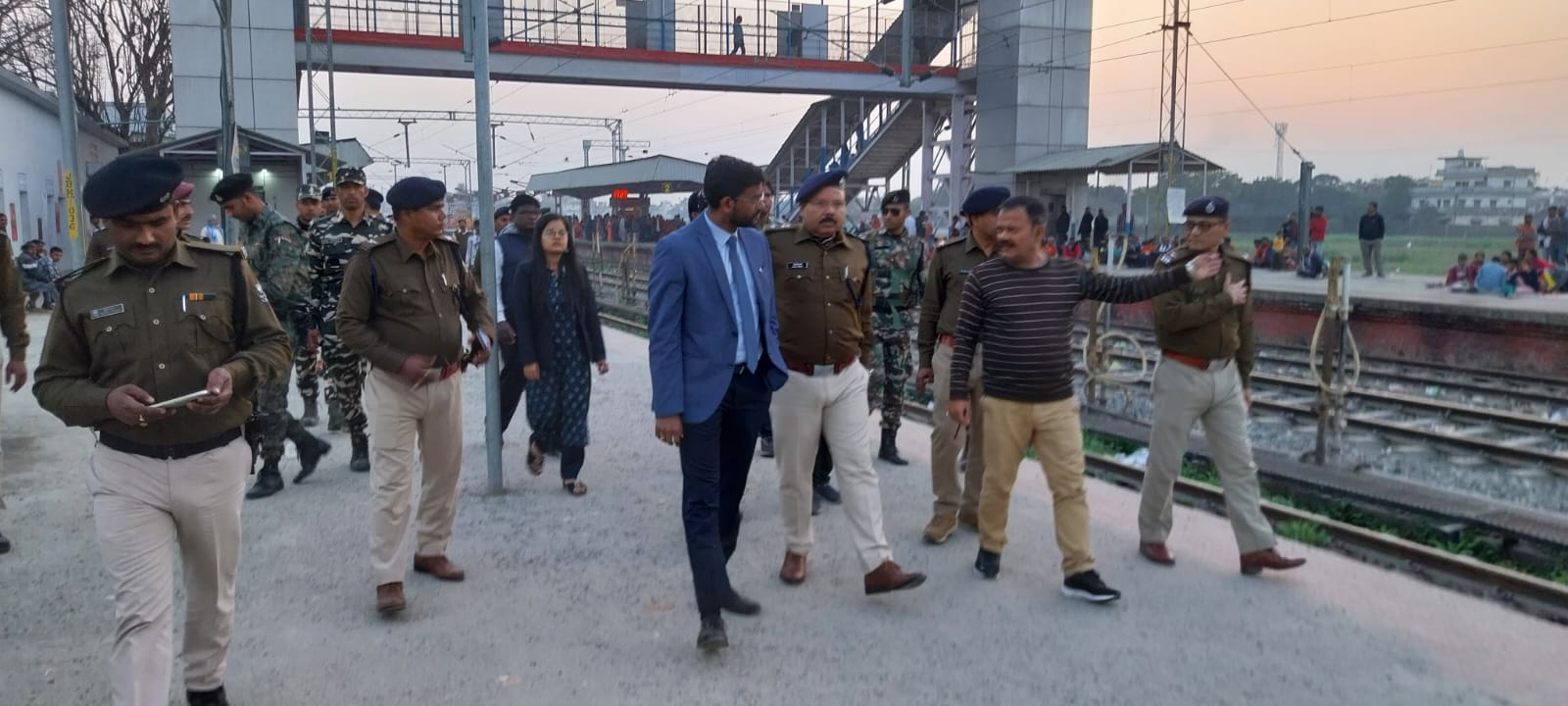 प्रयागराज में महाकुंभ मेला जाने के लिए जोगबनी रेलवे स्टेशन पर श्रद्धालुओं की उमड़ रही भीड़ को नियंत्रित करने के लिए डीएम अनिल कुमार,एसपी अंजनी कुमार अन्य अधिकारियों के साथ जोगबनी स्टेशन पहुंचे। सबसे पहले डीएम एसपी ने अधिककारियों के साथ श्रद्धालुओं के लिए किए गए व्यवस्था का जायजा लिया।जिसके बाद मौजूद रेलवे के अधिकारी,आरपीएफ,जीआरपी,एसएसबी और नगर परिषद के कार्यपालक पदाधिकारी को कई आवश्यक दिशा निर्देश दिए।