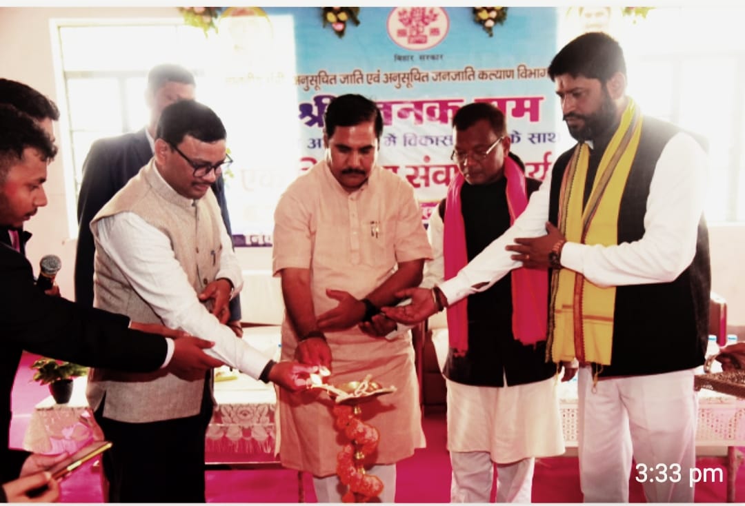 आज अनुसूचित जाति एवं अनुसूचित जनजाति कल्याण विभाग के मंत्री जनक राम का किशनगंज जिला मुख्यालय में आगमन हुआ। विकास मित्रों के साथ खेल भवन में संवाद कार्यक्रम का आयोजन किया गया जिसमें सभी 146 विकास मित्र उपस्थित रहे। मंत्री श्री राम के द्वारा सरकार की सभी योजनओं को अनुसूचित जाति एवं अनुसूचित जनजाति परिवार को अच्छादित करने का निदेश संवाद कार्यक्रम में दिया ।