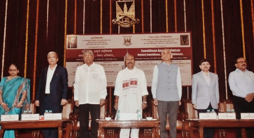 भारतीय संविधान की 75वीं वर्षगांठ के अवसर पर केंद्रीय सामाजिक न्याय एवं अधिकारिता मंत्री डॉ. वीरेंद्र कुमार ने आज मुंबई विश्वविद्यालय में आयोजित ‘संविधान अमृत महोत्सव’ में एक सभा को संबोधित किया। अपने मुख्य भाषण में डॉ. कुमार ने संविधान के प्रमुख निर्माता डॉ. भीमराव अंबेडकर से प्रेरित सामाजिक न्याय, समानता और सशक्तिकरण के आदर्शों को आगे बढ़ाने की सरकार की प्रतिबद्धता पर जोर दिया।