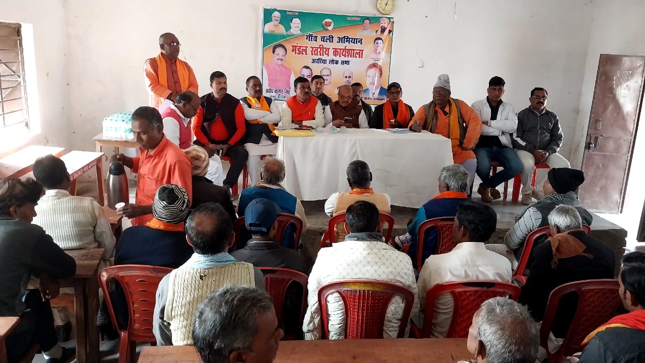 भरगामा प्रखंड के श्री दरबारी राय उच्च विद्यालय महथावा के प्रांगण में आडवाणी मंडल अध्यक्ष कौशल सिंह भदौरिया व भरगामा मंडल अध्यक्ष नित्यानंद मेहता की संयुक्त अध्यक्षता में ”गांव चलो अभियान” के निमित्त बैठक आहूत की गई है। जिसमे नरपतगंज विधायक जयप्रकाश यादव, प्रखंड के मंडल पदाधिकारी,संयोजक ,सह संयोजक व कार्यकर्ता शामिल हुए।