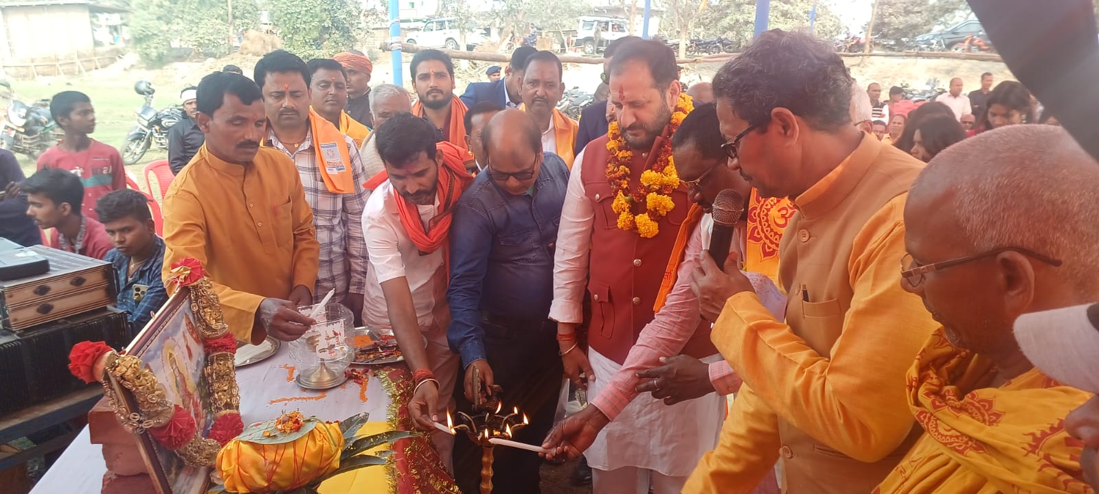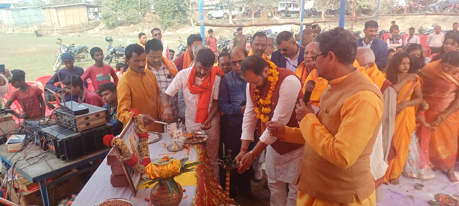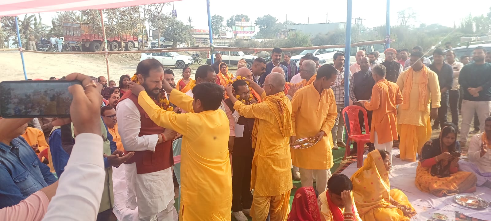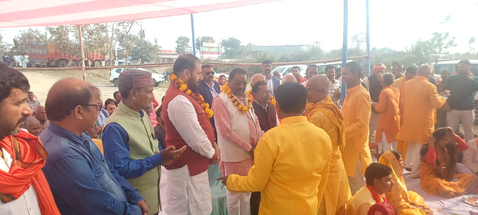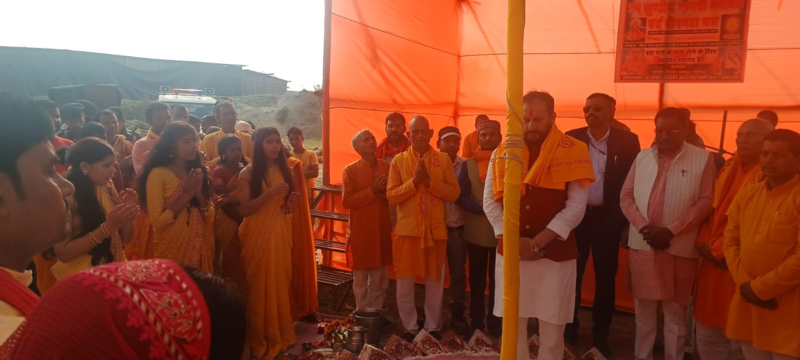 आगामी 10 से 12 मार्च तक आयोजित होने वाले महायज्ञ के लिए स्थानीय विधायक सह बिहार सरकार के मंत्री नीरज कुमार सिंह बबलु के द्वारा भूमि पुजन के बाद झंडारोहन किया गया, सुपौल के पंडित अजीत कुमार सिंह एवं महेशपुर के शिवनारायण साह के मंत्रोच्चारण के बीच महिलाओ एवं कन्याओं के द्वारा महायज्ञ स्थल का भूमि पुजन विधि विधान पूर्वक किया गया,