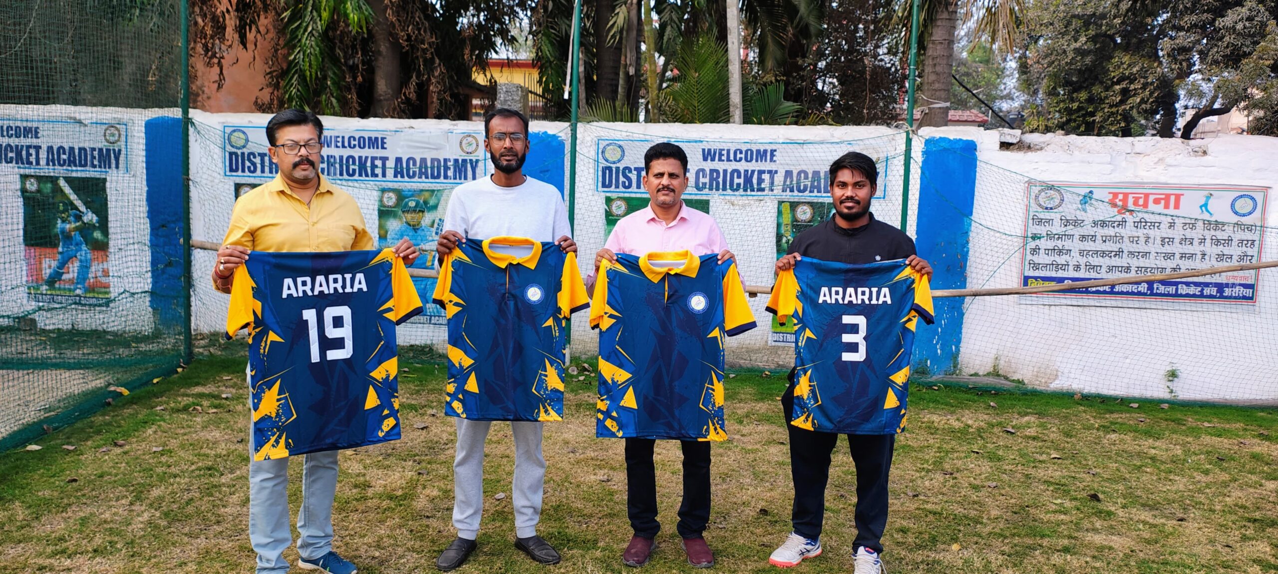 नजरिया न्यूज अररिया। विकाश प्रकाश। अररिया जिला क्रिकेट संघ ने बिहार क्रिकेट संघ द्वारा आयोजित सिनियर मेन्स अन्तर जिला क्रिकेट टूर्नामेंट के लिए नई जर्सी लांच की है। इस मौके पर बिहार क्रिकेट संघ जिला प्रतिनिधि ओम प्रकाश जायसवाल, कोषाध्यक्ष अमित सेनगुप्ता, चयन समिति के सदस्य तनवीर आलम, अररिया टीम के कप्तान सरवन कुमार ने इसे जारी किया।