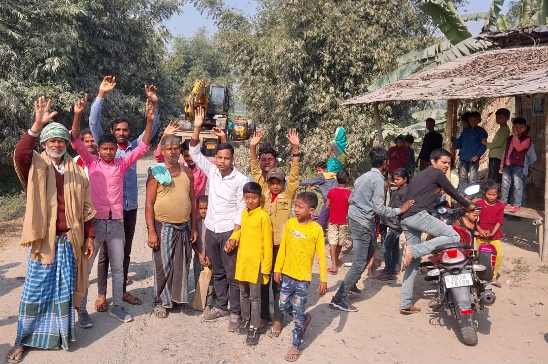 फोटो परिचय : जर्जर सड़क की मरम्मत की मांग को लेकर प्रदर्शन करते नाराज ग्रामीण