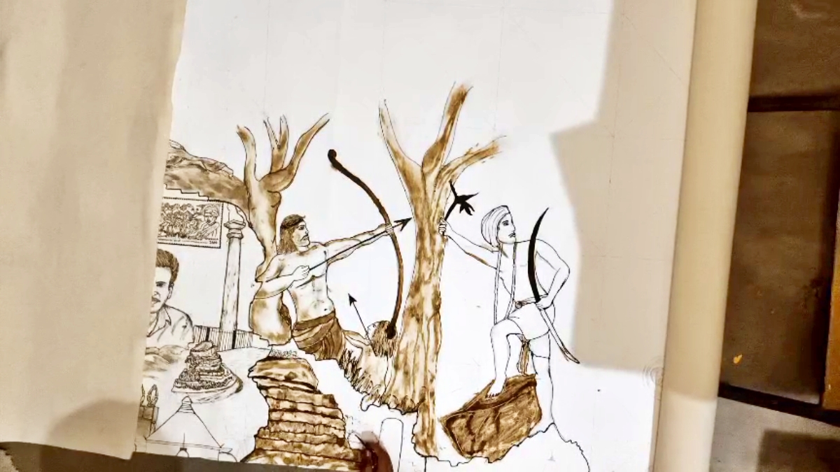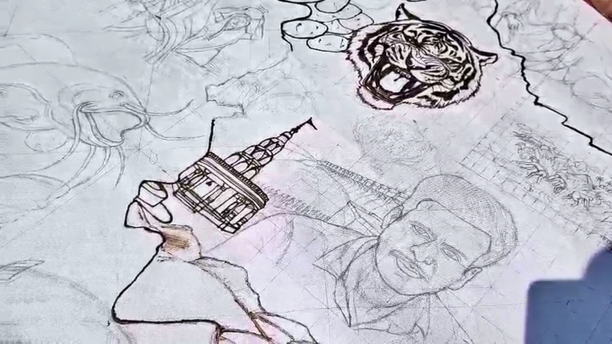 18 मीटर लंबा पेंटिंग बनातीं प्रज्ञा ठाकुर (Najaria News)