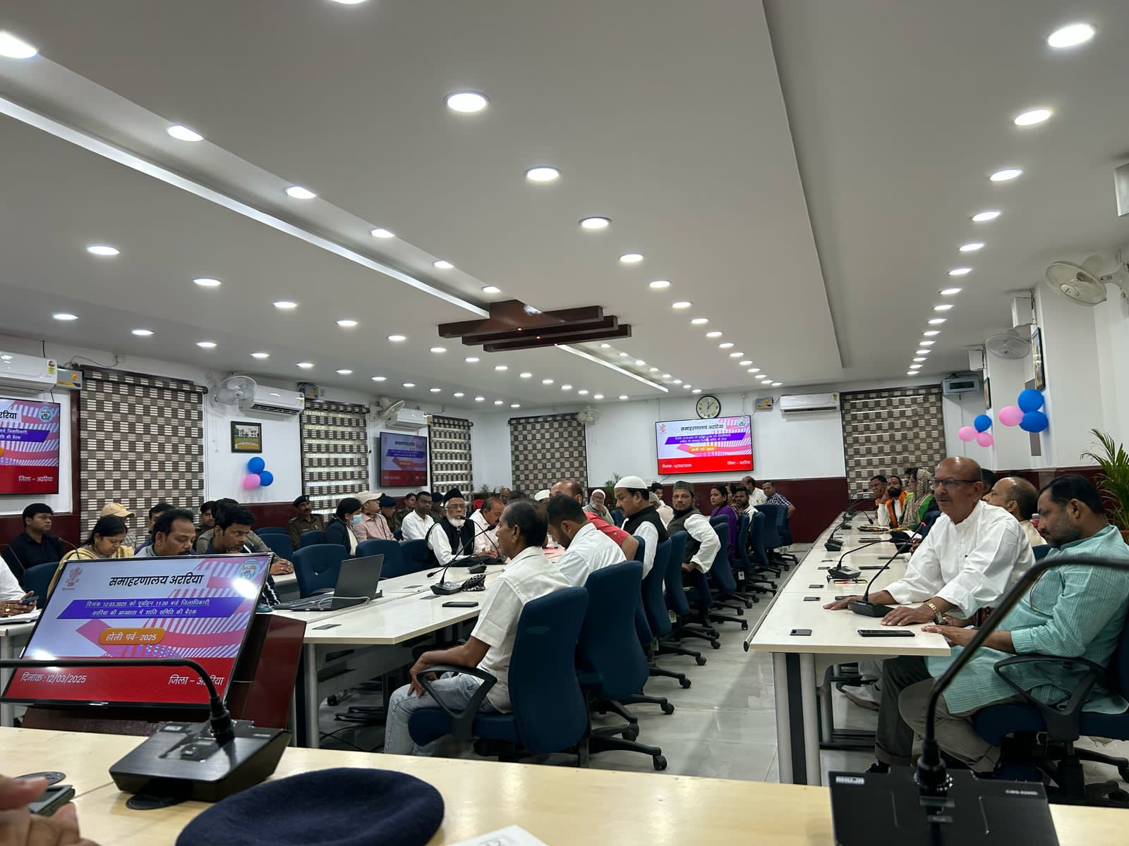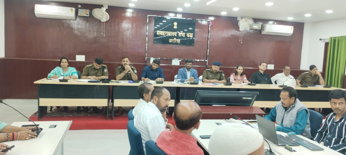 जिला पदाधिकारी, अररिया, श्री अनिल कुमार तथा पुलिस अधीक्षक अररिया, श्री अंजनी कुमार की संयुक्त अध्यक्षता में समाहरणालय अररिया स्थित परमान सभागर में होली पर्व को लेकर शांति समिति की बैठक आयोजित की गई। बैठक में जिला पदाधिकारी द्वारा बताया गया कि अररिया एवं फारबिसगंज अनुमंडल क्षेत्र में 225 स्टैटिक दंडाधिकारी पुलिस पदाधिकारी, पुलिस बल सहित अररिया में 16 तथा फारबिसगंज में 16 गस्ती दल, दंडाधिकारी सहित पुलिस पदाधिकारी की प्रतिनियुक्ति की गई है।