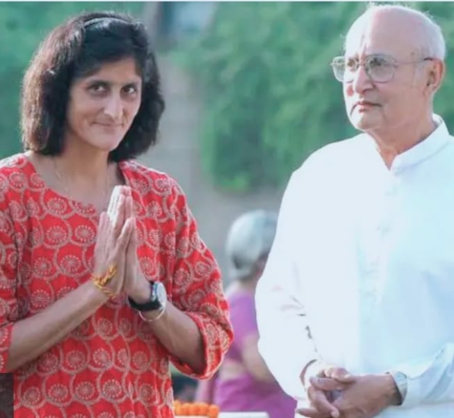 राजघाट पर अपने पिता डॉक्टर दीपक पंड्या के साथ सुनीता विलियम्स
