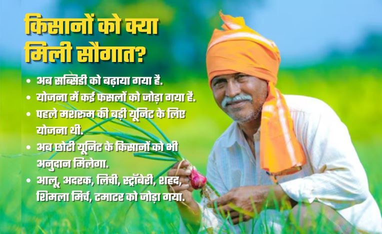 विनीत कुमार बताते हैं कि जिस प्रकार बाजार की मांग है, उसको देखते हुए इसमें बदलाव किए गए हैं. इस स्कीम के तहत बहुत सी ऐसी फसलें हैं, जो किसान उगाना चाहते हैं तो इसमें अनुदान लेकर अपना काम कर सकते हैं.