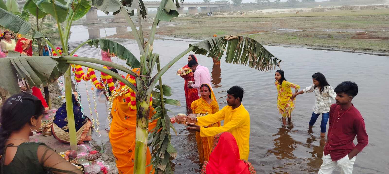 प्रखंड के विभिन्न बकड़ा नदी छठ घाट,तालाबों, नदियों और जलाशयों तो किसी ने छत पर ही टब में पानी भर व्रतियों ने अपने परिवारजनों के साथ पूजा-अर्चना की। छठ व्रतियों ने पानी में खड़े होकर सूर्यदेव को अर्ग अर्पित किया और सुख-समृद्धि की कामना की। इस दौरान श्रद्धालुओं ने पारंपरिक गीत गाए, जिससे पूरा वातावरण भक्तिमय हो गया।