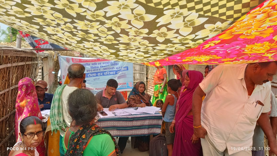 भवानीपुर प्रखंड के बसंतपुर चिंतामणि पंचायत अंतर्गत वार्ड नंबर 2 के महादलित टोला में अनुसूचित जाति एवं जनजाति वर्ग के लिए एक दिवसीय विशेष सिविल का आयोजन किया गया। इस सिविर का उद्देश्य छूटे हुए लाभुकों को सरकारी योजनाओं की जानकारी देना एवं उनका नामांकन सुनिश्चित करना है।सिविर का शुभारंभ प्रखंड कृषि नोडल पदाधिकारी नितीश भारद्वाज ने किया। उन्होंने उपस्थित ग्रामीणों को संबोधित करते हुए कहा कि राज्य सरकार अनुसूचित जाति एवं जनजाति वर्ग के लिए अनेक योजनाएं चला रही है, जिनका लाभ सभी पात्र व्यक्तियों तक पहुँचना चाहिए। उन्होंने बताया कि सरकार की मंशा है कि कोई भी लाभुक वंचित न रहे, इसलिए इस प्रकार के विशेष सिविरों का आयोजन किया गया है।