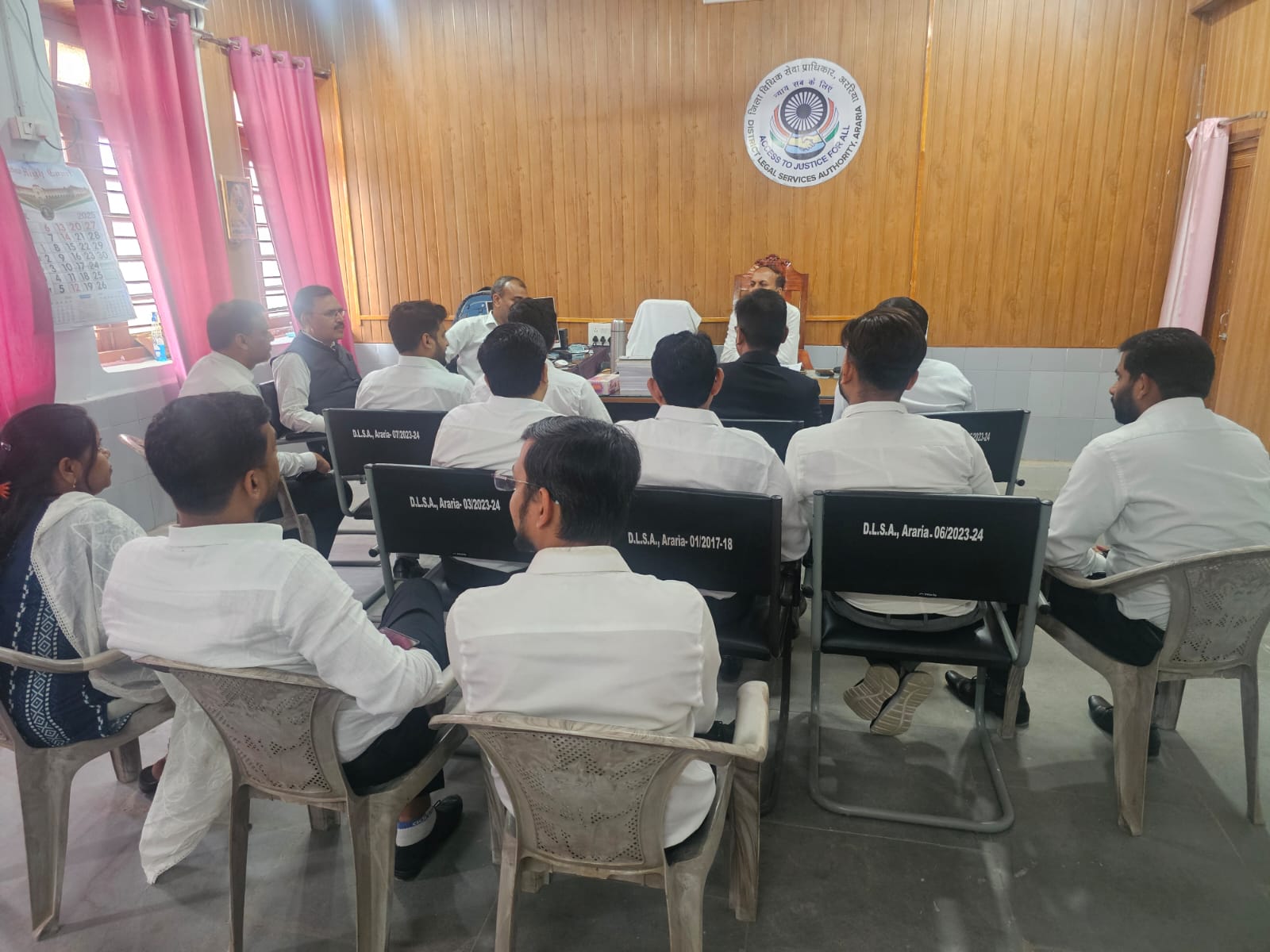 बैठक की अध्यक्षता अवर न्यायधीश सह डीएलएसए सेक्रेटरी रोहित श्रीवास्तव ने की। उनके द्वारा राष्ट्रीय लोक अदालत के लिए भेजे गये नोटिस के तामिला व चिन्हित सुल्हानिये वादों सहित अन्य महत्वपूर्ण बिंदुओं पर खुलकर चर्चा किये। राष्ट्रीय लोक अदालत आगामी 10 मई को व्यवहार न्यायालय अररिया के प्रांगण में होना है।