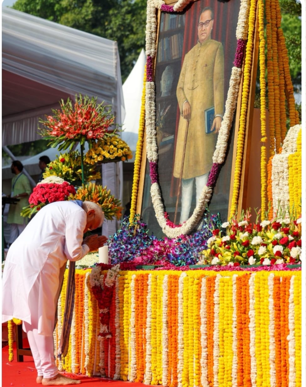 बाबा साहब की प्रतिमा के समक्ष पीएम मोदी -फाइल फोटो –