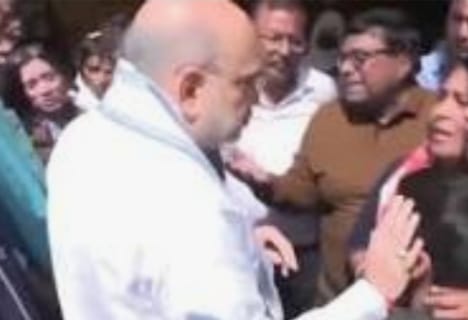 फफक-फफक कर गृह मंत्री अमित शाह को चरमपंथियों की वारदात की जानकारी देते चरमपंथी घटना में मारे गए मृतकों के परिजन
