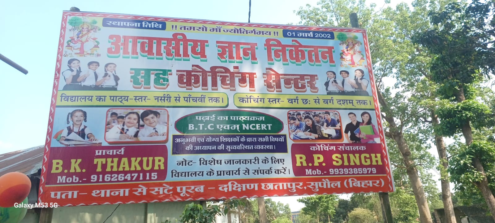 छातापुर थाना के समीप बुधवार को आवासीय ज्ञान निकेतन सह कोचिंग सेंटर का शुभारंभ बुधवार को किया गया, जिसका उद्घाटन मुख्य अतिथि डा विपीन कुमार सिंह, मुखिया प्रतिनिधि मकसूद मसन, गणमान्य लक्षमण राम, राम प्रसाद रमण ने फीता काटकर किया, मौके पर हरित हीरालाल केशरी, पर्यावरण सांसद रामप्रकाश रवि, शिक्षक गौतम मनोहर, विद्यालय के प्राचार्य बी के ठाकुर,