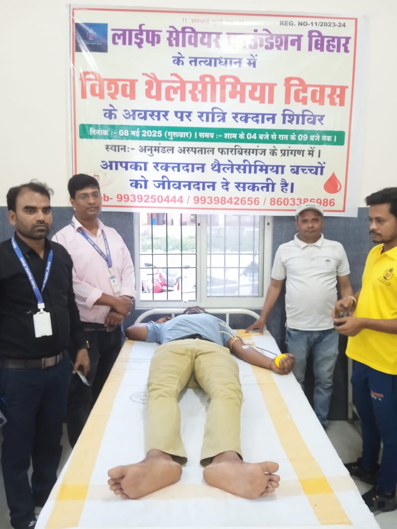 थैलेसीमिया दिवस खून से जुड़ी एक अनुवांशिक बीमारी हैं. जो शरीर में हीमोग्लोबीन के निर्माण की प्रक्रिया को प्रभावित करता है. इसके उपचार के प्रति अभी भी लोगों की पहुंच बेहद सीमित है. थैलेसीमिया आज भी जिले में बहुत सारे बच्चे व उनके अभिभावकों के लिये शारीरिक व भावनात्मक समस्या का कारण बना हुआ है. यह बच्चों से जुड़ी एक ऐसी बीमारी है. जिसके बारे में अभी भी लोगों को काफी कम जानकारी है. आम लोगों को रोग के कारण व इससे बचाव संबंधी उपायों के बारे में जागरूक करने के उद्देश्य से हर साल 08 मई को विश्व थैलेसीमिया दिवस आयोजित किया जाता है. इस वर्ष विश्व थैलेसीमिया दिवस का थीम थैलेसीमिया के लिए एकजुट हों: समुदायों को एकजुट करें, रोगियों को प्राथमिकता दें निर्धारित किया गया है. मौके पर जिले में जागरूकता संबंधी कई कार्यक्रम आयोजित किये गये. वहीं सदर अस्पताल स्थित ब्लड़ बैंक व अनुमंडल अस्पताल में रक्तदान शिविर का आयोजन किया गया. ब्लड़ बैंक में रक्तदान शिविर का आयोजन थैलेसीमिया पीड़ित परिवार व फारबिसगंज में लाइव सेवेयीर के माध्यम से रक्तदान शिविर का आयोजन किया गया. अररिया में तीन यूनिट व फारबिसगंज में दो यूनिट ब्लड़ संग्रह किये जाने की जानकारी है.