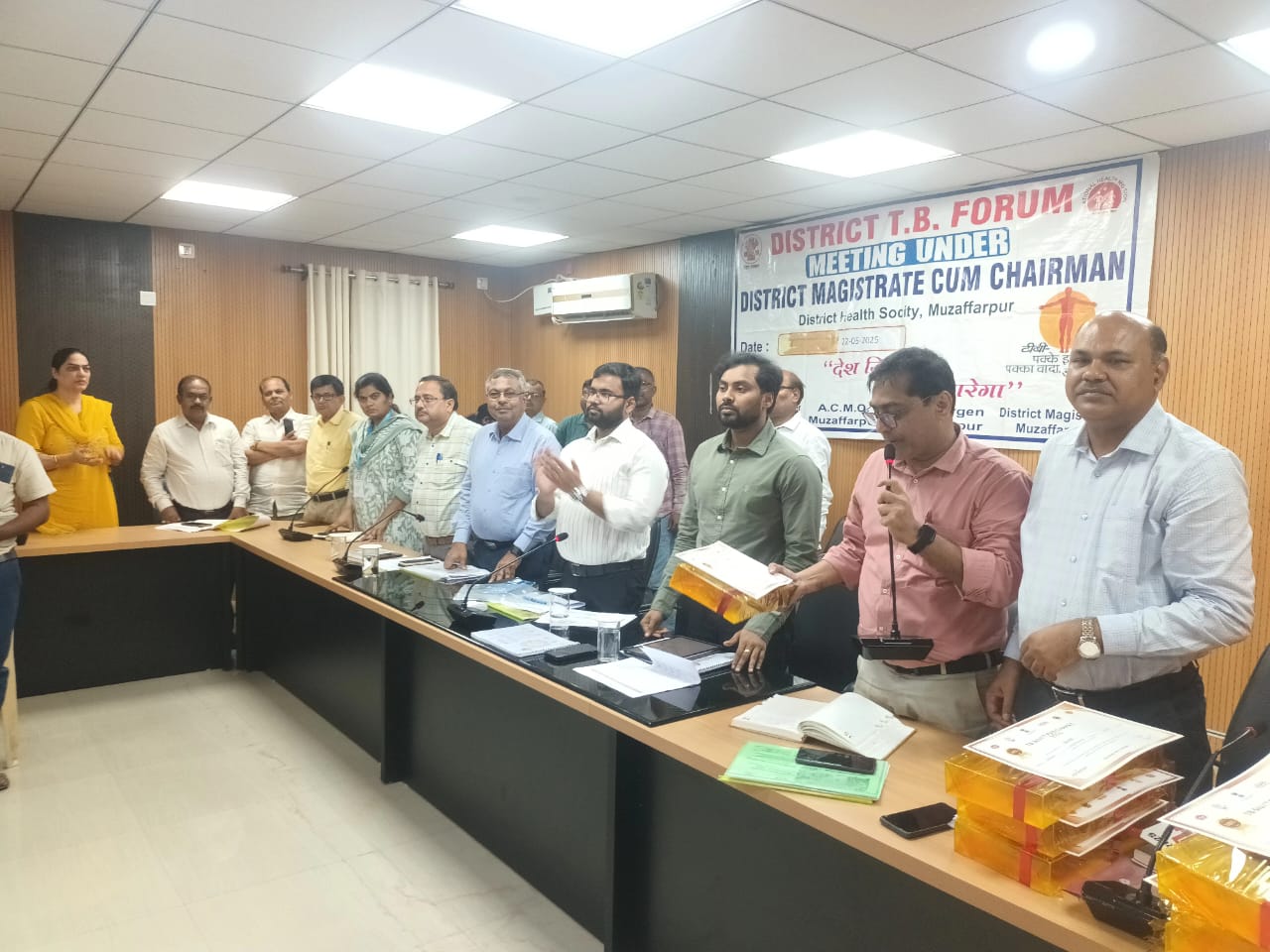 पुनरीक्षित राष्ट्रीय यक्ष्मा कार्यक्रम के क्रियान्वयन एवं इसके लक्ष्यों के प्राप्ति हेतु जिला स्तरीय टीबी फोरम (डिस्ट्रिक्ट टास्क फोर्स) की बैठक गुरुवार को समाहरणालय सभागार में उप विकास आयुक्त श्रेष्ठ अनुपम की अध्यक्षता में हुई। टीबी मुक्त पंचायत “पहल” कार्यक्रम के अंतर्गत जिले के आठ पंचायत- गीजास, खैरा एवं अमैठा प्रखंड सरैया, तेपरी प्रखंड बांद्रा, लखनपुर प्रखंड कटरा, जियान खुर्द प्रखंड मड़वन, रामनगर एवं बाघाखाल प्रखंड गायघाट को टीबी मुक्त घोषित किया गया है।