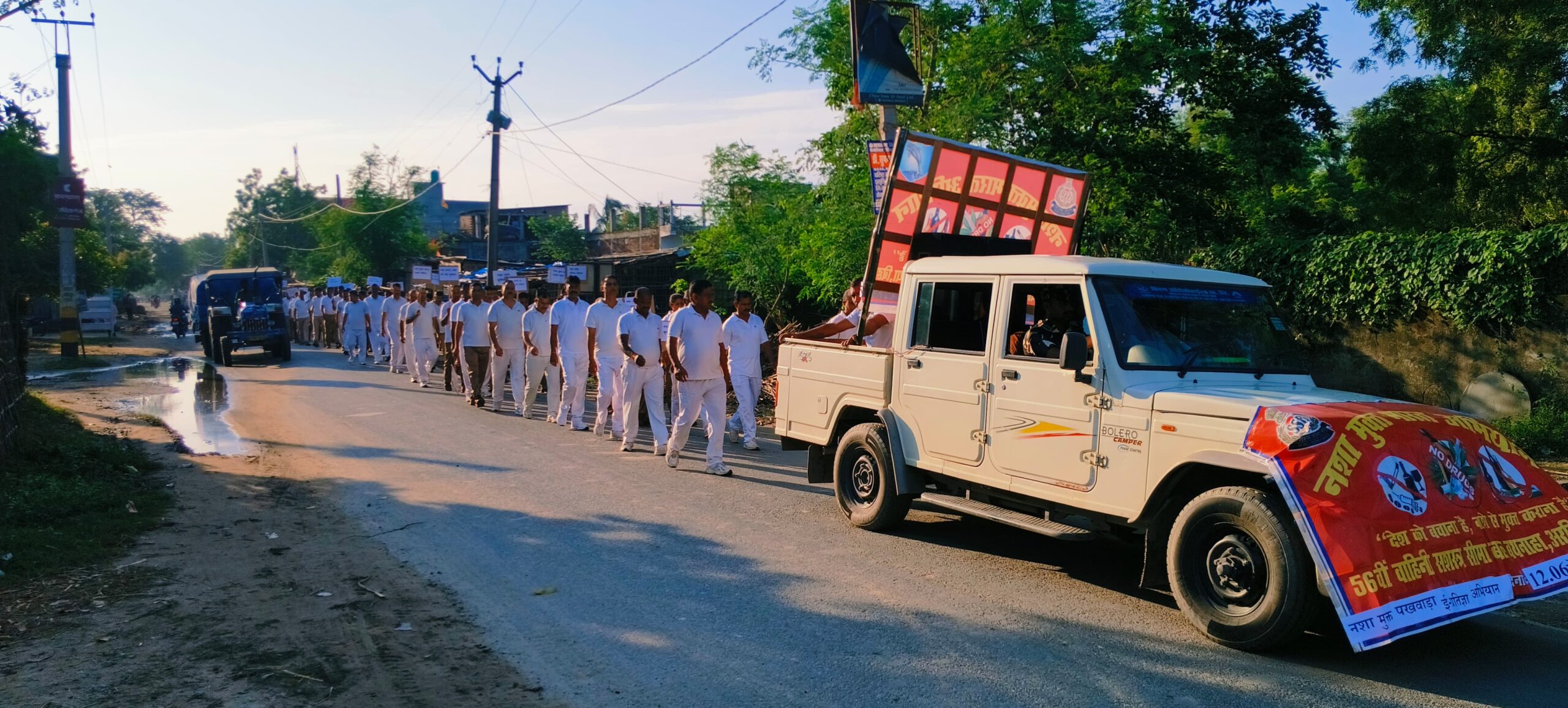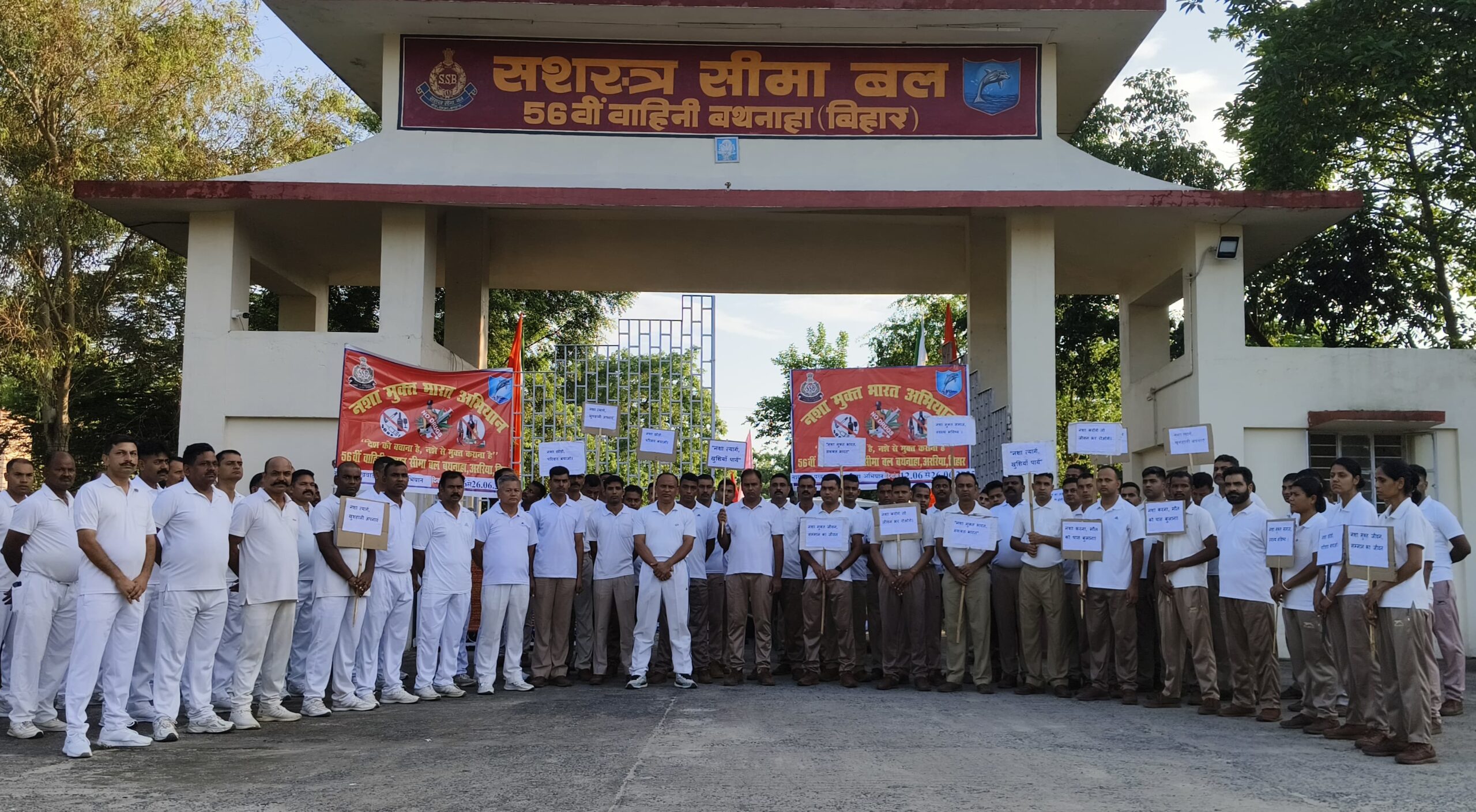 56वीं वाहिनी, सशस्त्र सीमा बल, बथनाहा के कमांडेंट महोदय के मार्गदर्शन में बुधवार को “नशा मुक्त भारत अभियान” के अंतर्गत एक जागरूकता रैली एवं ई-प्रतिज्ञा कार्यक्रम का आयोजन किया गया। यह रैली वाहिनी मुख्यालय परिसर से आरंभ होकर बीरपुर मोड़ तक निकाली गई, जिसमें “नशा छोड़ो, जीवन संवारो” जैसे गगनभेदी नारों से वातावरण गुंजायमान हो उठा।