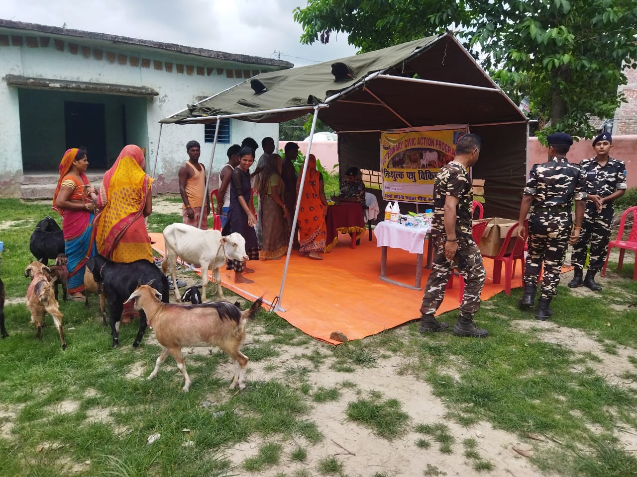 मधुबनी (अररिया)। रविवार को सशस्त्र सीमा बल 52वीं वाहिनी की ओर से कमांडेंट श्री महेंद्र प्रताप के निर्देशन में बाह्य सीमाचौकी मधुबनी के अंतर्गत सामुदायिक भवन, मधुबनी में नि:शुल्क पशु चिकित्सा शिविर का आयोजन किया गया। इस शिविर में ग्रामीण क्षेत्र के दर्जनों पशुपालकों ने बढ़-चढ़कर भाग लिया।