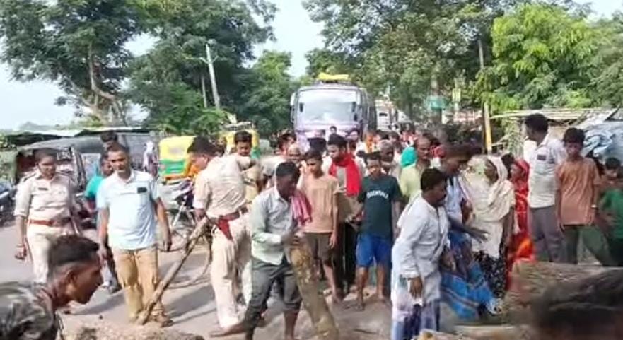 गुस्साए लोगों ने शव को सड़क पर रख रानीगंज-अररिया मुख्य मार्ग को जाम कर दिया और प्रदर्शन करने लगे। मौके पर पहुंची पुलिस टीम में शामिल इंस्पेक्टर सतीश कुमार, दरोगा चंदन कुमार ने लोगों को समझा-बुझाकर जाम हटवाया।