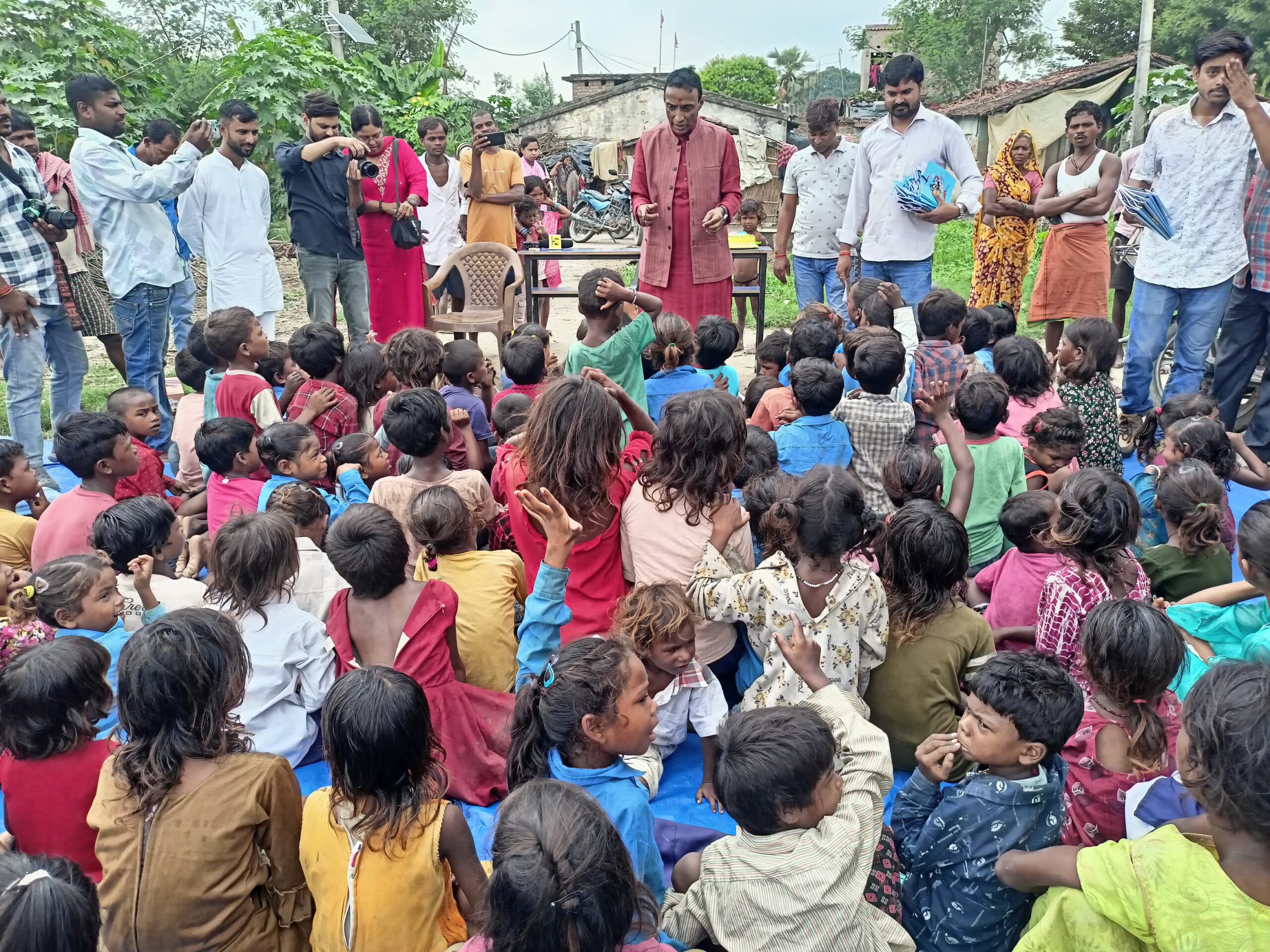 इस अवसर पर उपस्थित सैंकड़ो बच्चों के बीच उन्होंने बिस्किट, कॉपी-कलम का वितरण करते हुए उन्हें पढ़ने लिखने एवं नियमित रूप से स्कूल जाने के लिए प्रेरित किया।