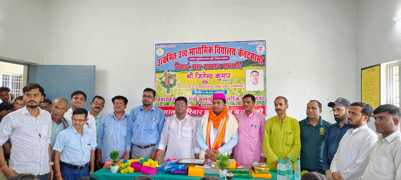 उत्क्रमित उच्च माध्यमिक विद्यालय केवटगामा में प्रधानाध्यापक पद के लिए चयनित शिक्षक जितेन्द्र कुमार का विदाई सह सम्मान समारोह का आयोजन शुक्रवार को प्रधानाध्यापक शंभू सदा की अध्यक्षता में किया गया। जिसमें शिक्षक श्री कुमार को मिथिला परंपरा के अनुसार पाग,माला और अंगवस्त्र देकर सम्मानित किया गया। कार्यक्रम को संचालित करते हुए शिक्षक लखींद्र राम ने कहा कि जितेन्द्र सर बहुयामी प्रतिभा के धनी व्यक्ति हैं।