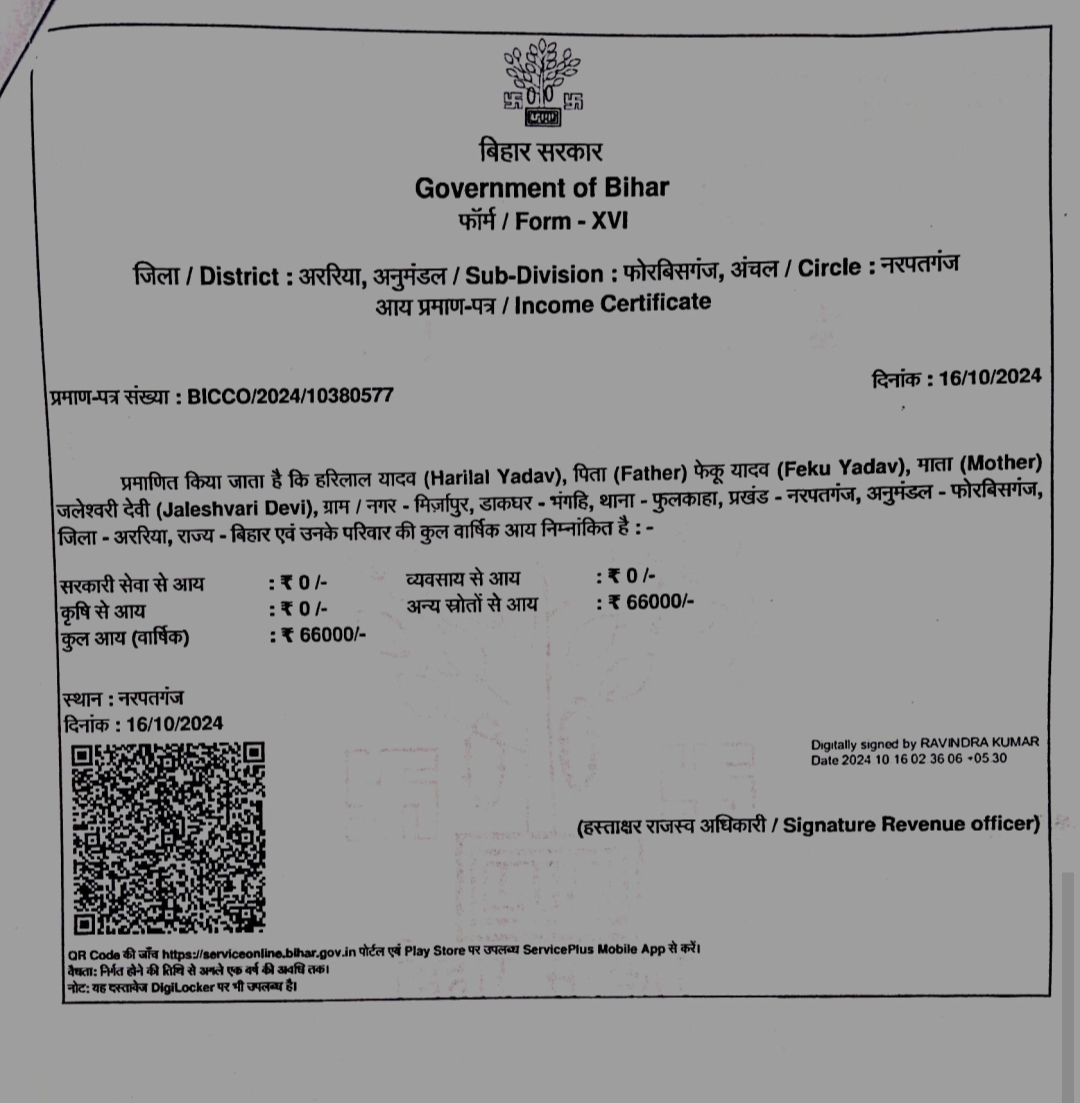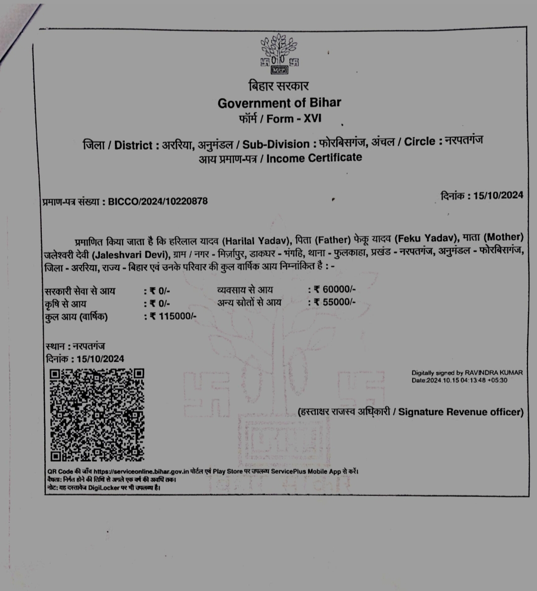 उन्होंने दोबारा ऑनलाइन आवेदन किया और इस बार 500 की रिश्वत देने के बावजूद प्रमाण पत्र में आय 66,000 अंकित कर दी गई, जबकि वास्तविकता इससे काफी कम थी। हरिलाल यादव ने यह भी आरोप लगाया कि आलोक झा का रवैया बेहद अपमानजनक और असंवेदनशील है, और वे आम नागरिकों के साथ दुर्व्यवहार करते हैं। हरिलाल यादव के अनुसार उन्होंने पंचायत प्रतिनिधियों से लेकर प्रखंड कार्यालय तक अपनी समस्या को रखा, लेकिन कहीं सुनवाई नहीं हुई। अंत में वे जिला पदाधिकारी से न्याय की उम्मीद लेकर आवेदन देने पहुंचे।