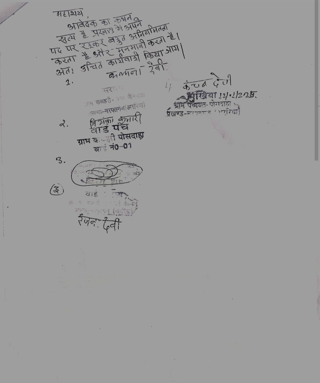 वीडियो सामने आते ही सोशल मीडिया पर आक्रोश की लहर फैल गई है। इस मामले को नरपतगंज प्रखंड के पोसदाहा पंचायत, मिर्जापुर गांव वार्ड संख्या 01 निवासी दिव्यांग हरिलाल यादव ने जिला पदाधिकारी अररिया को लिखित आवेदन सौंपते हुए इस भ्रष्टाचार के खिलाफ त्वरित व कठोर कार्रवाई की मांग की है।
