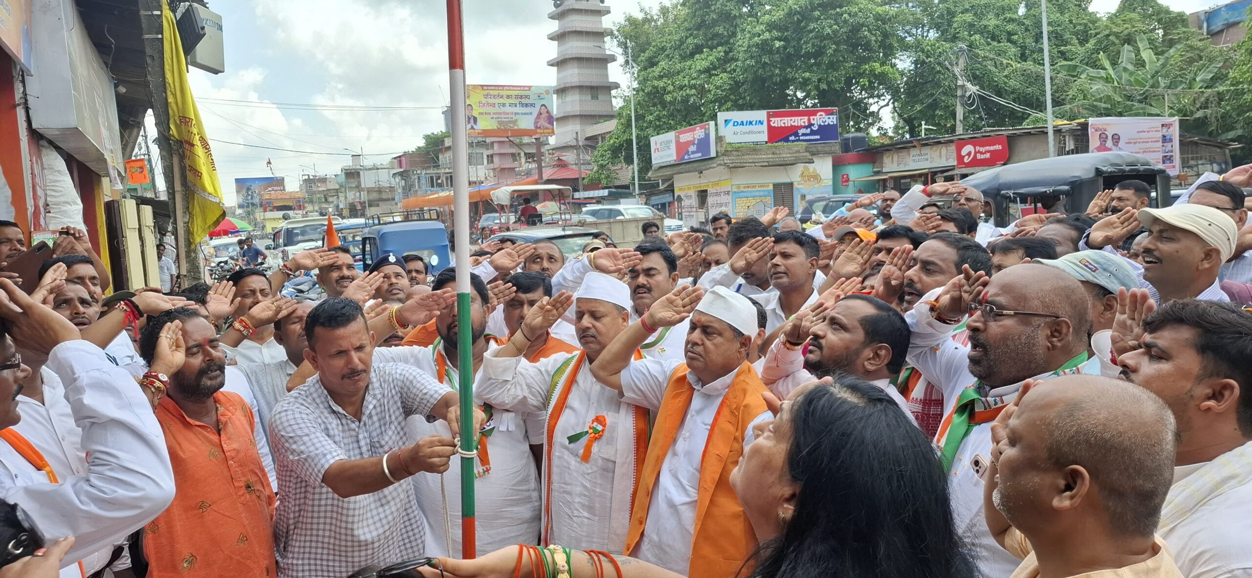 पूर्णिया के सदर विधायक जनसंपर्क कार्यालय में स्वतंत्रता दिवस के अवसर पर विधायक विजय खेमका ने ध्वजारोहण कर तिरंगे को सलामी दी। 79वें स्वतंत्रता दिवस पर ध्वजारोहण के साथ उपस्थित जनसमूह ने राष्ट्रगान गाकर तिरंगे को सलामी दी और देश की आजादी में अपने प्राणों की आहुति देने वाले अमर शहीदों को नमन किया । इस अवसर पर विधायक ने कहा कि आज का दिन हम सबके लिए गर्व का दिन है तथा अमर शहीदों को याद करने का दिन है।