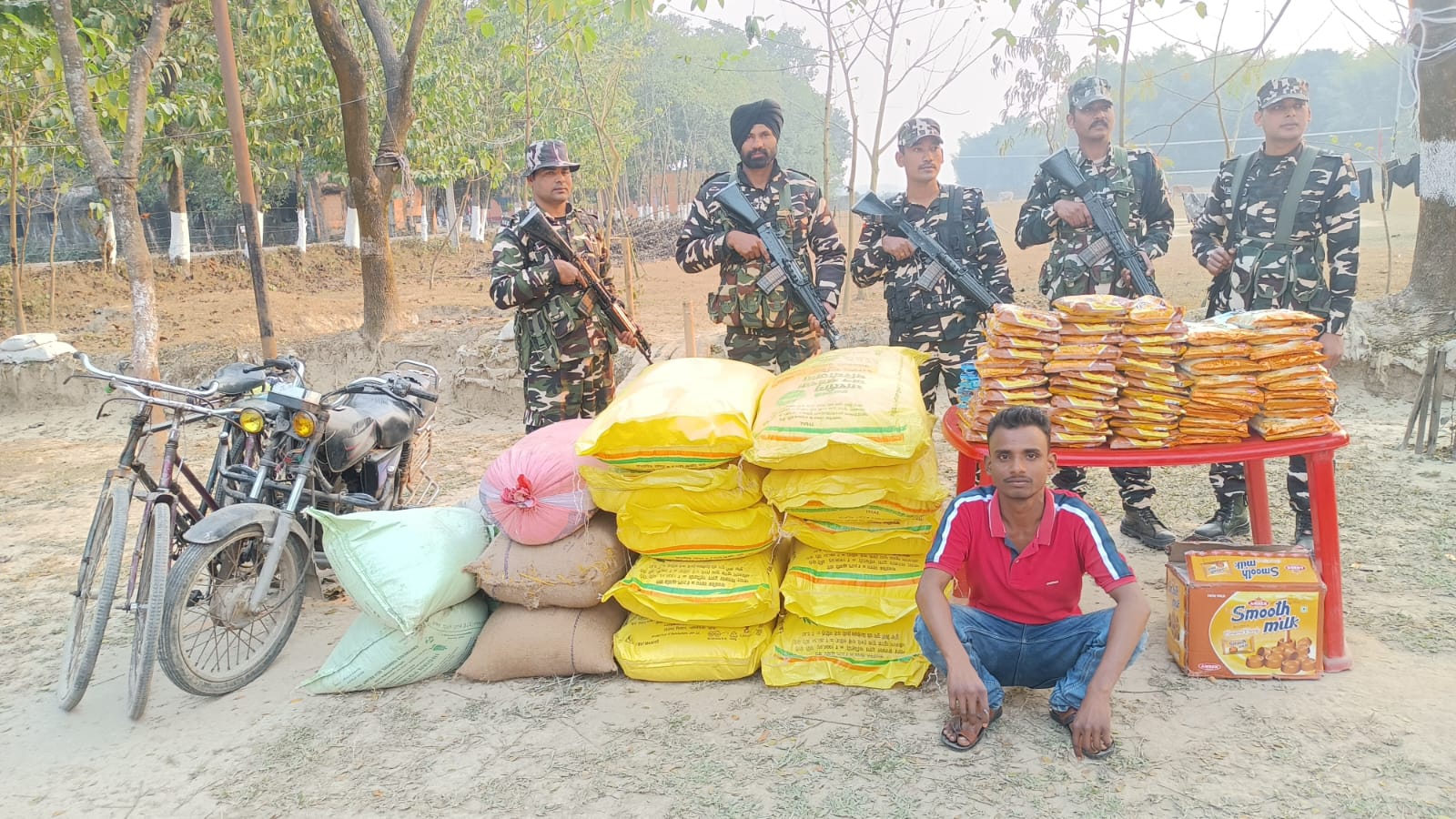 यह खाद्यान भी भारतीय क्षेत्र से नेपाल की तरफ जा रहा था। जबकि इसके साथ स्मूथ मिल्क कैंडी 68 पैकेट, 48 पैकेट कोकोनट कैंडी सहित एक बाईक तथा दो साईकिल को भी भारत-नेपाल सीमा के पीलर संख्या 160/46 के समीप जब्त किया गया। सीमा से लगभग 100 मीटर अंदर भारतीय क्षेत्र में जवानों ने तस्कर को धर-दबोचा। जब्त किए गए सामानों की जब्ती सूची बनाकर फारबिसगंज कस्टम के सुपुर्द कर दिया गया है।