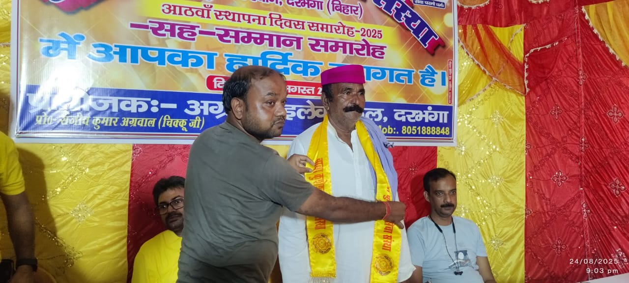 बाबा कुशेश्वर सेवा संस्था के आठवां स्थापना दिवस सह सम्मान समारोह बीती रविवार की देर शाम कुशेश्वरस्थान बाजार स्थित वैष्णवी दुर्गा मंदिर परिसर में के हर्षोउल्लास के साथ मनाया।