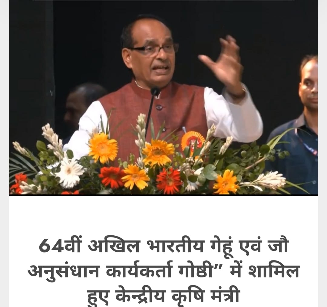 केन्द्रीय मंत्री श्री चौहान मंगलवार को मध्य प्रदेश के ग्वालियर में राजमाता विजयाराजे सिंधिया कृषि विश्वविद्यालय के दत्तोपंत ठेंगड़ी सभागार में आयोजित तीन दिवसीय “64वी अखिल भारतीय गेहूं एवं जौ अनुसंधान कार्यकर्ता गोष्ठी” के दूसरे दिन कृषि वैज्ञानिकों, प्रगतिशील किसानों, कृषि उद्यमियों एवं कृषि विद्यार्थियों को संबोधित कर रहे थे।