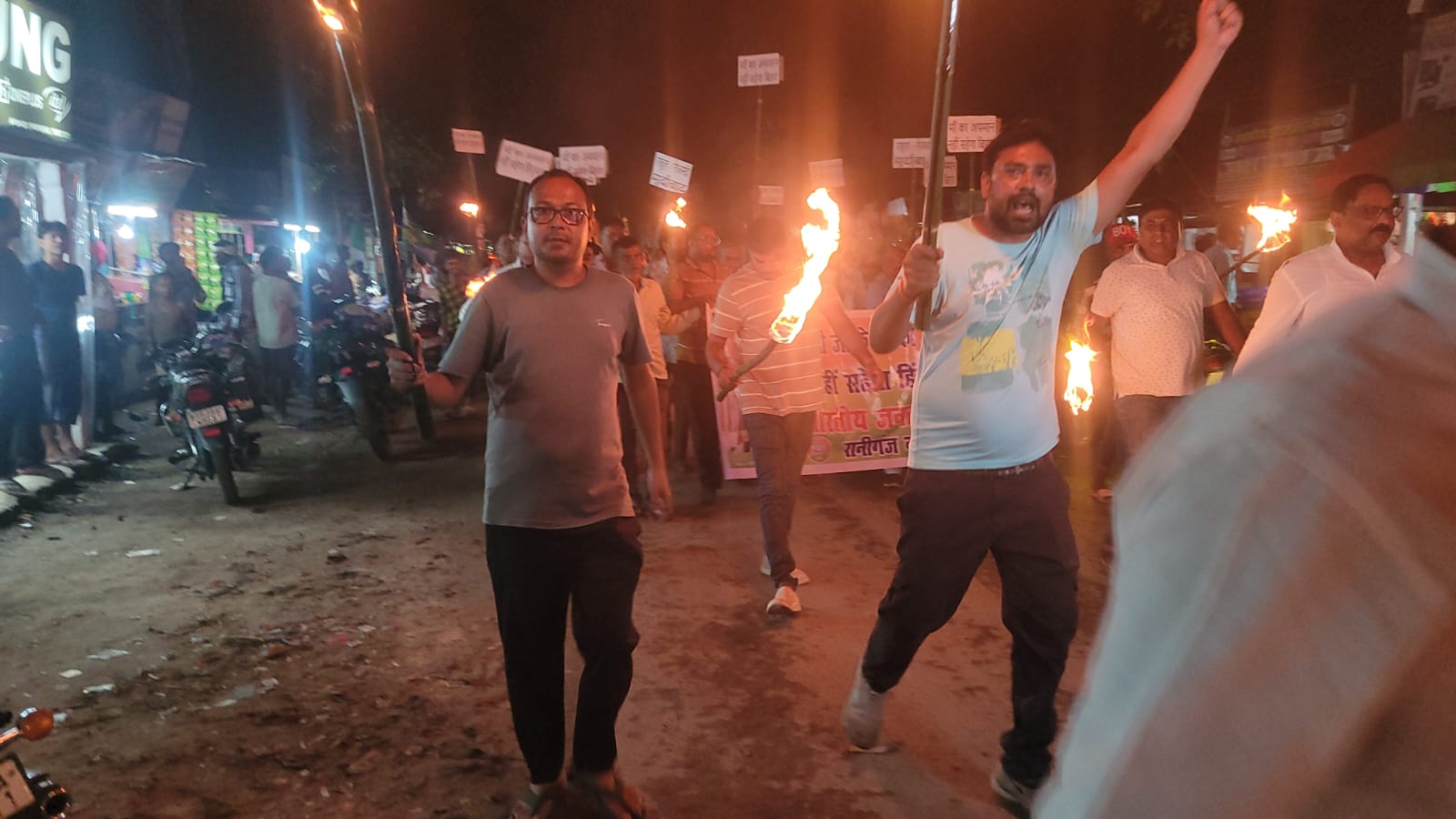 मशाल जुलूस के दौरान जगह-जगह पर लोगों की भीड़ जमा हो गई और पूरा बाजार विरोध के नारों से गूंज उठा। कार्यकर्ताओं ने चेतावनी दी कि यदि इस तरह की अभद्र राजनीति नहीं रुकी तो आंदोलन और उग्र रूप लेगा। सभी कार्यकर्ताओं ने बुधवार को भारत बंद में सभी की सहयोग की अपील की